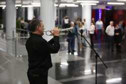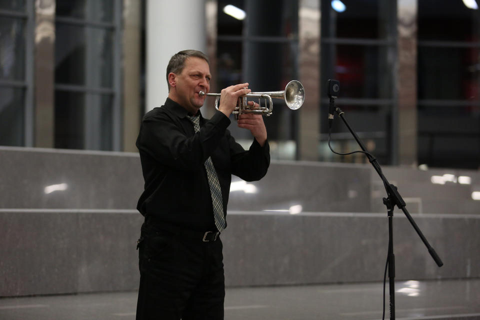 Гостей ККЗ «Пенза» музыкальной программой приветствовал музыкант ансамбля песни и танца «Казачья застава» Александр Мереняшев (труба).