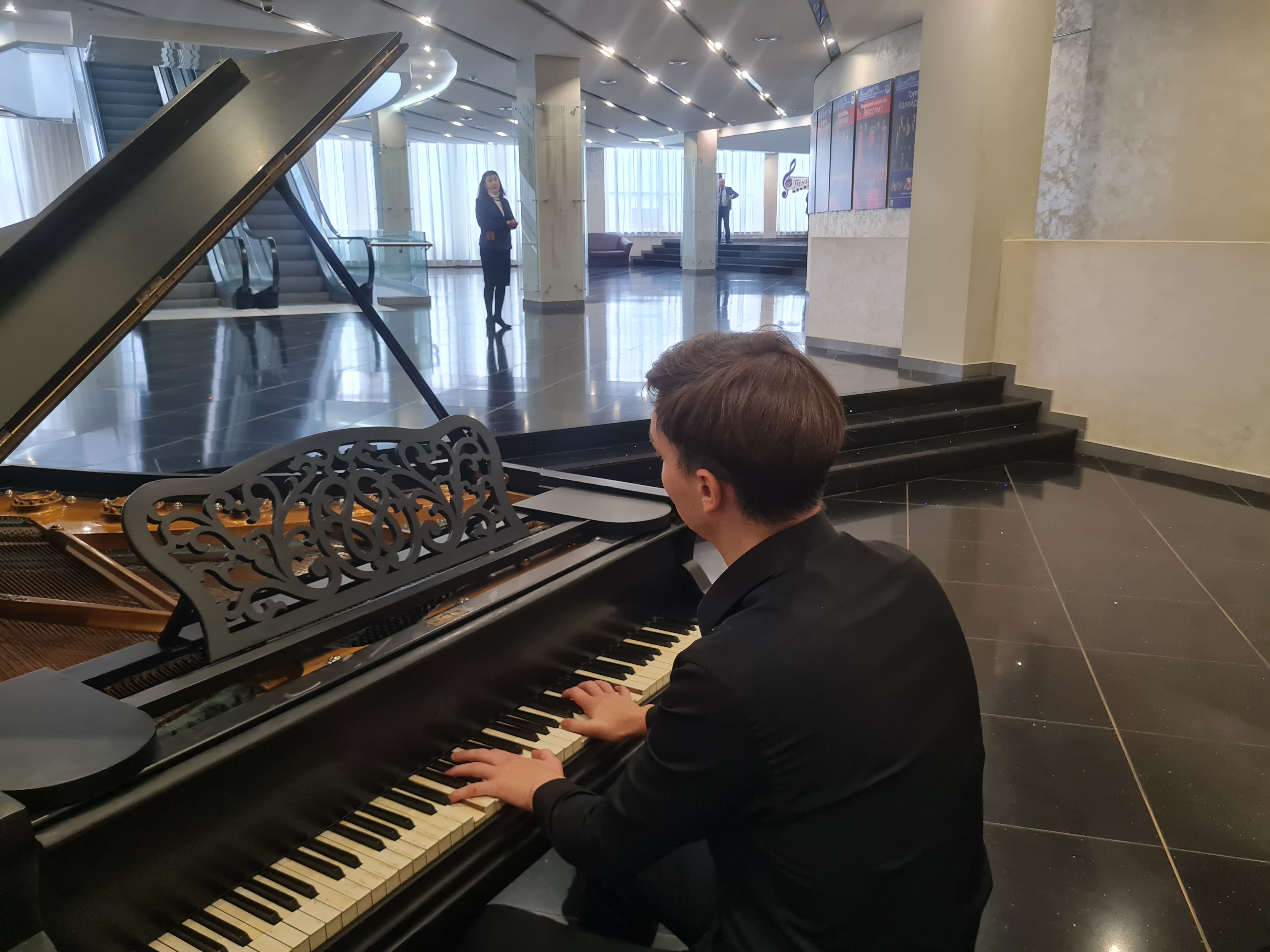 Гостей вечера с музыкальной программой встречал музыкант эстрадно-джазового ансамбля «Экспресс-бэнд» Геннадий Купринович (фортепиано).