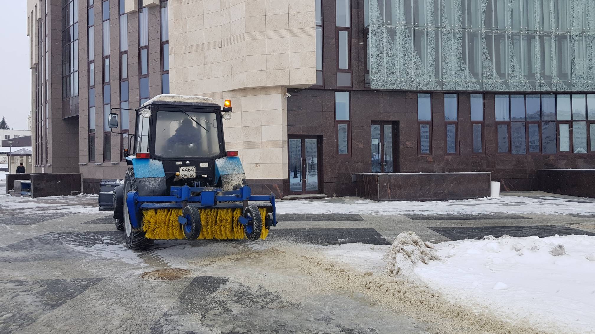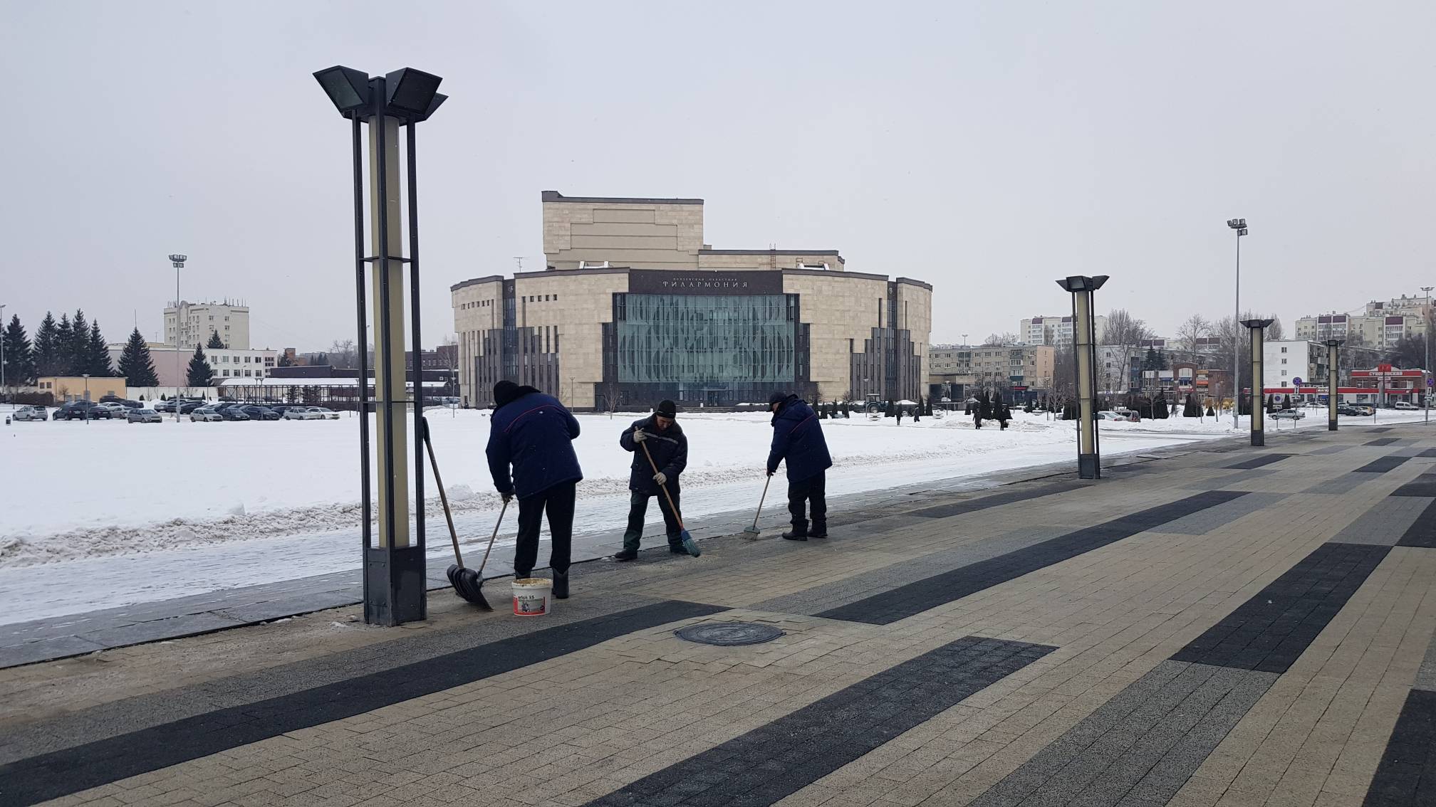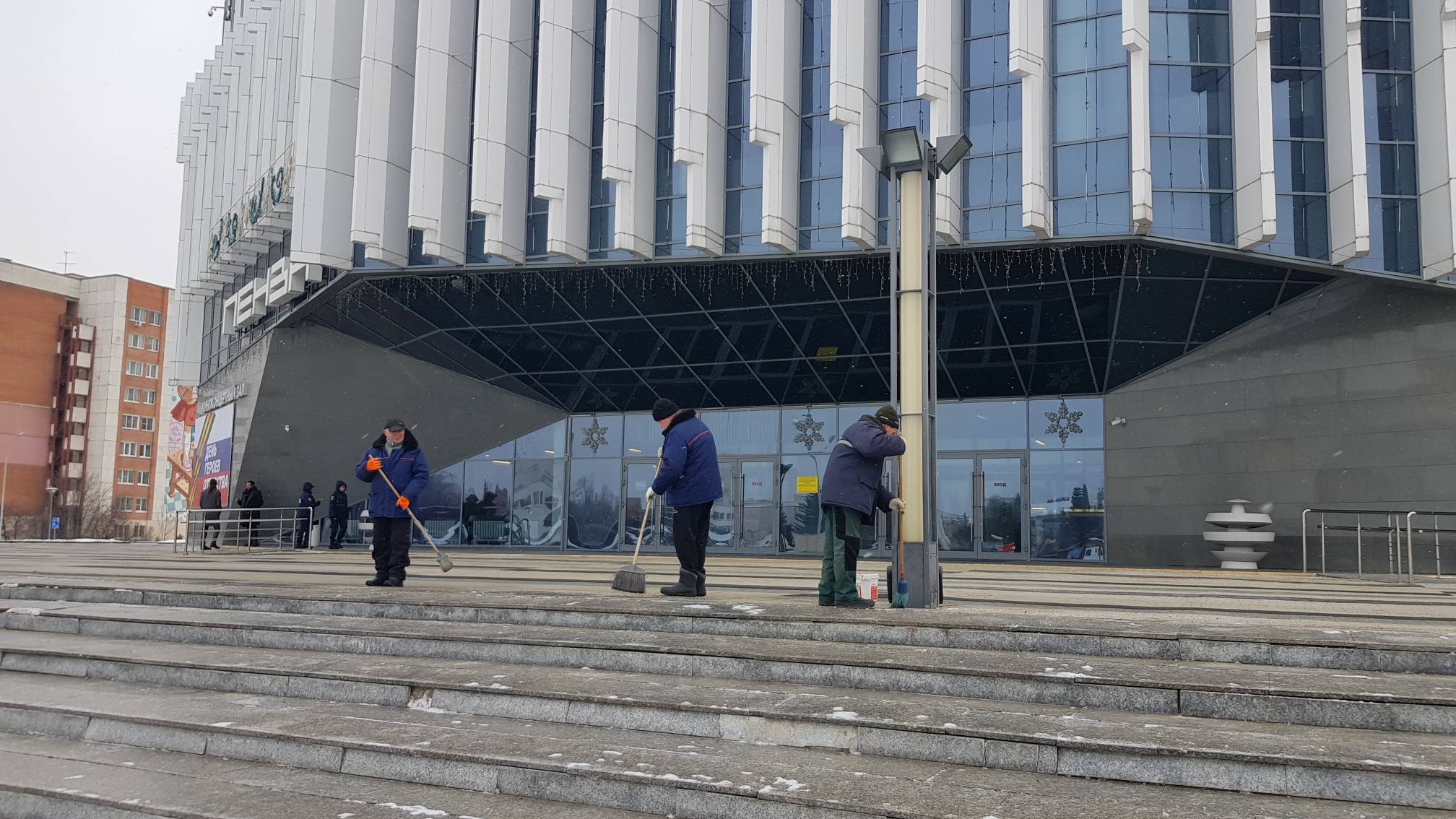 Сотрудники «Пензаконцерта» ежедневно посыпают территорию возле Киноконцертного зала «Пенза» и здания филармонии песком, а также убирают снег и наледь на пешеходных дорожках и ступенях при помощи подручных средств и техники.