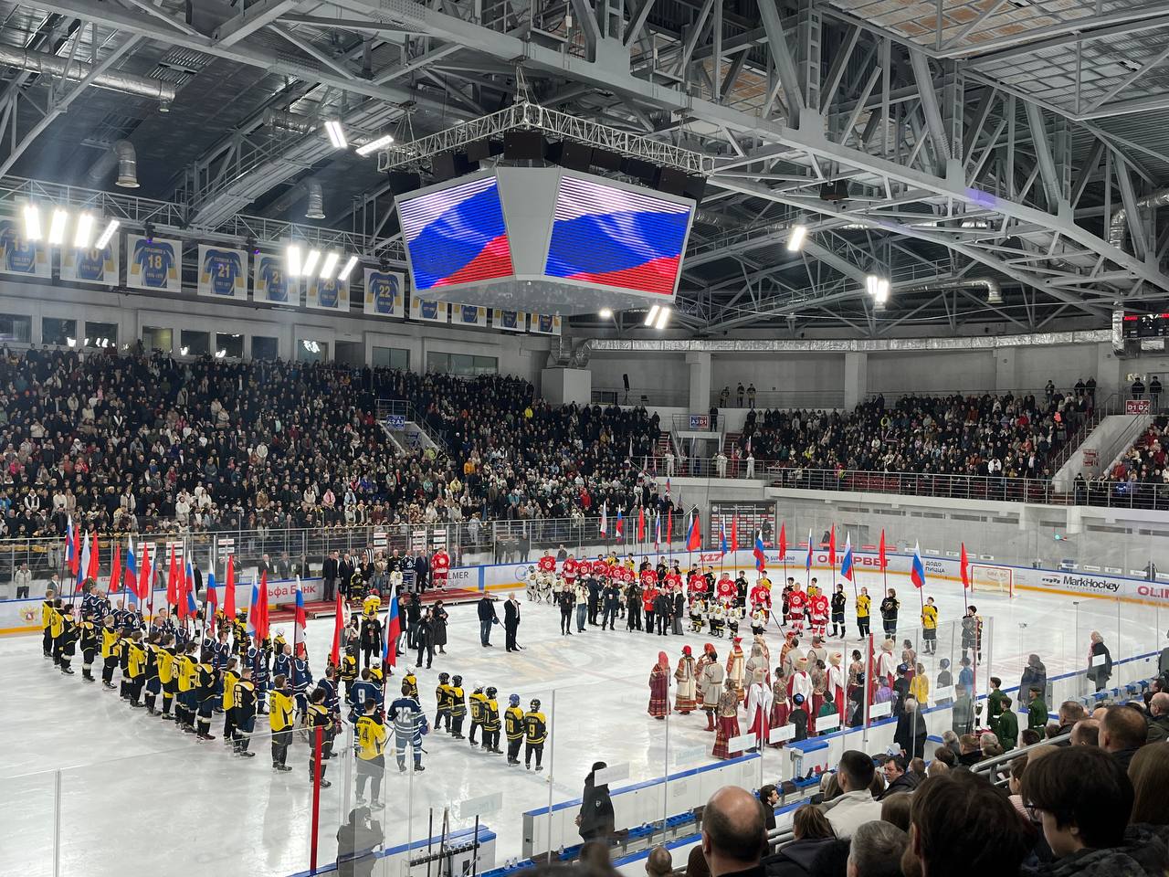 В торжественной церемонии открытия гала-матча с участием губернатора Пензенской области Олега Мельниченко приняли участие артисты ансамбля русской этнической музыки «Миряне» и ансамбля песни и танца «Казачья застава», исполнившие гимн России.
