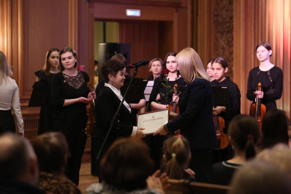 После официальной части состоялся концерт, участие в котором приняли педагоги, ведущие коллективы и солисты отделения музыкального образования Пензенского колледжа искусств, среди которых – Сергей Суднев (фортепиано), Вячеслав Денисов (скрипка), лауреат международных и всероссийских конкурсов народный оркестр колледжа (руководитель – Ольга Лялина), камерный оркестр и ансамбль скрипачей (руководитель – Владислав Казаков), квартет «Ars-Viva», академический хор (руководитель – Ольга Лобеева), а также приглашенные музыканты из Москвы, Санкт-Петербурга и Нижнего Новгорода: профессор Нижегородской консерватории Михаил Рыбин (фортепиано), Алексей Герасимов (фортепиано), солистка Мариинского театра Александра Пономарёва.