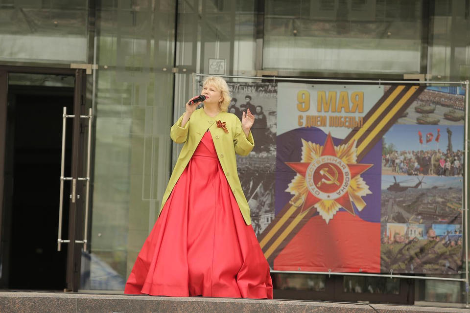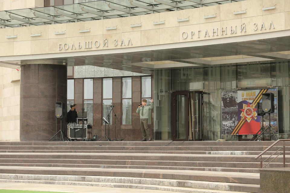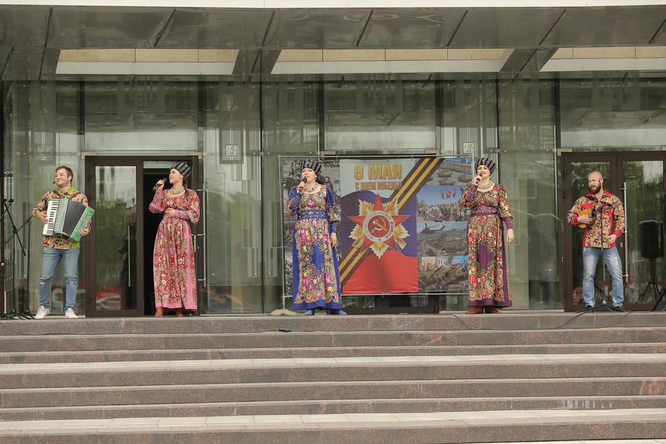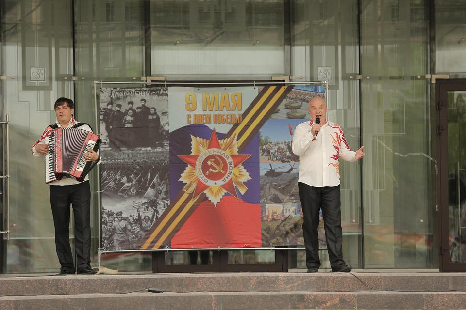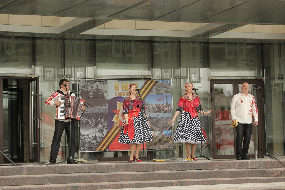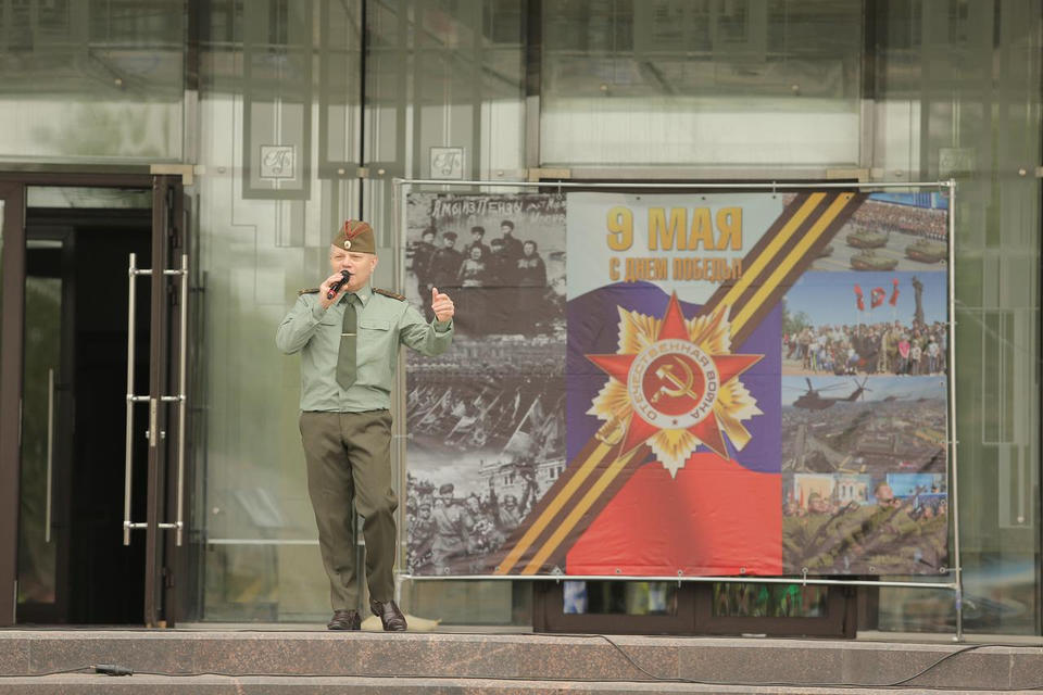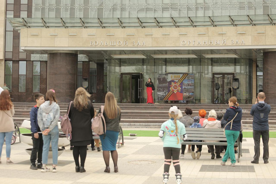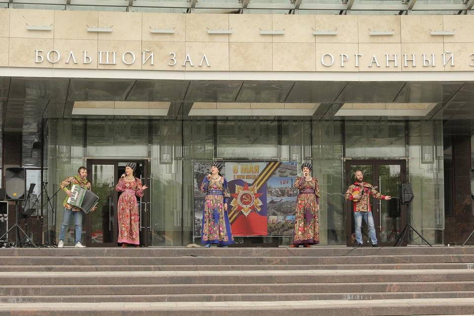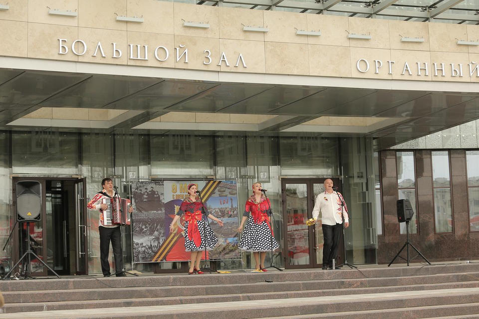 В День Победы на площади возле центрального входа в здание филармонии артисты «Пензаконцерта» выступили с программой «Песни, опалённые войной…».