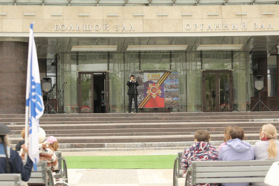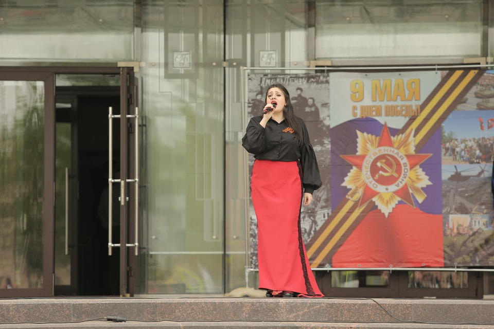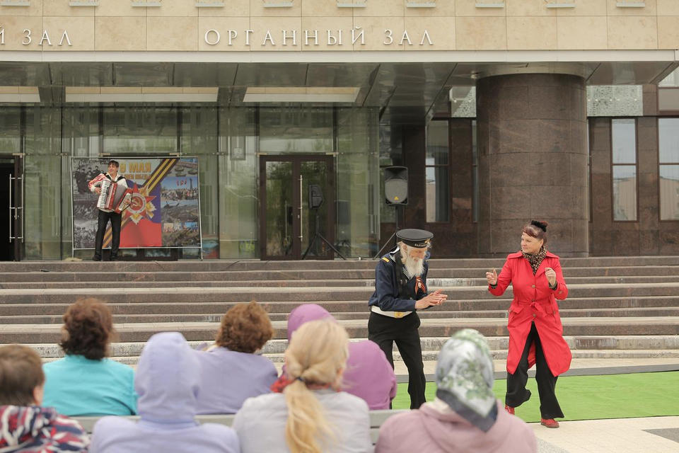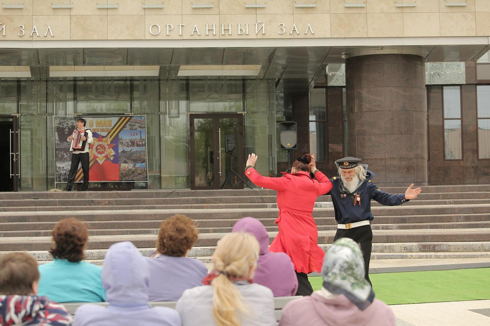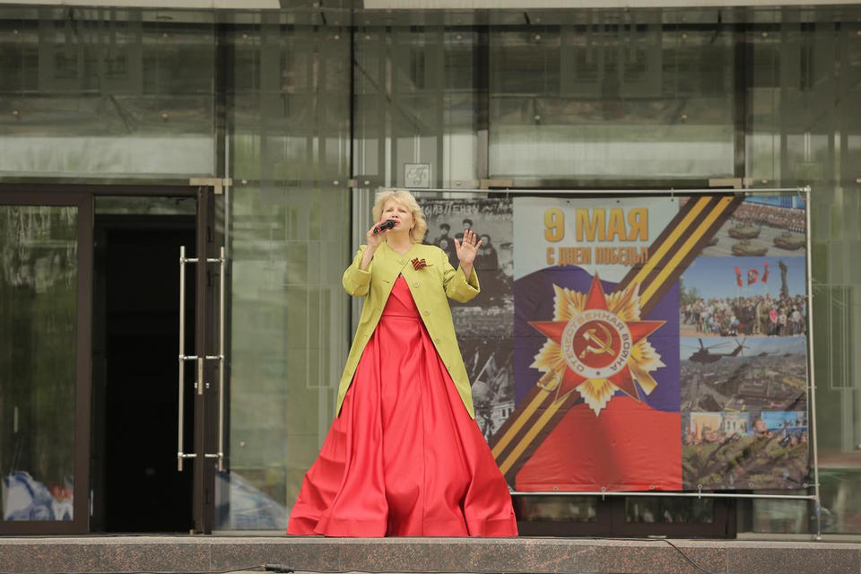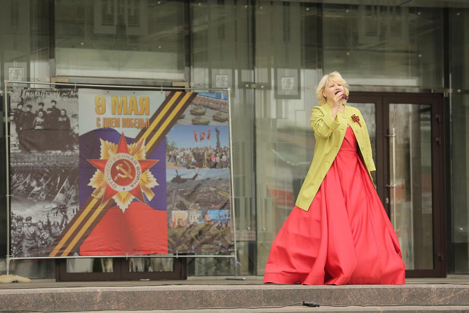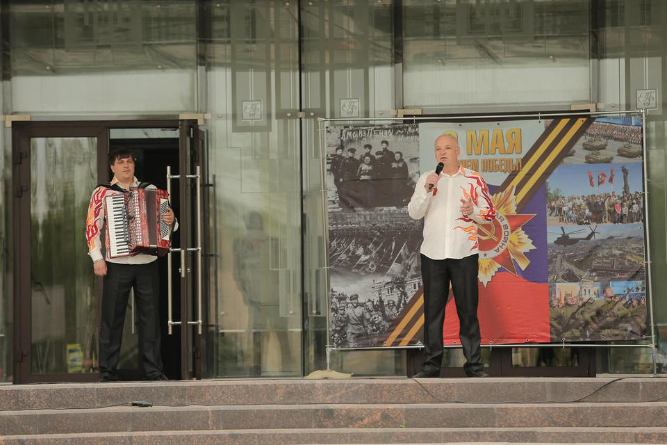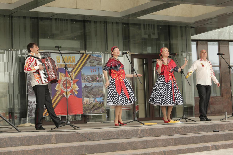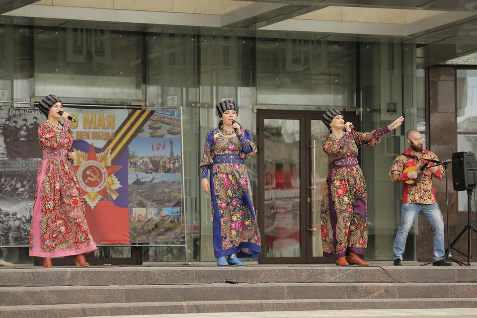В День Победы на площади возле центрального входа в здание филармонии артисты «Пензаконцерта» выступили с программой «Песни, опалённые войной…».