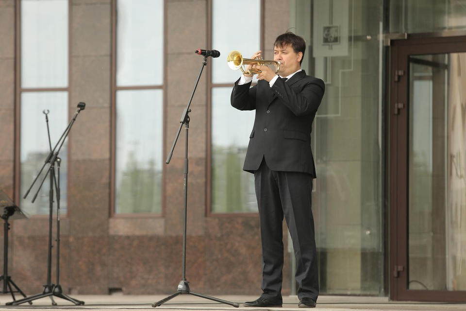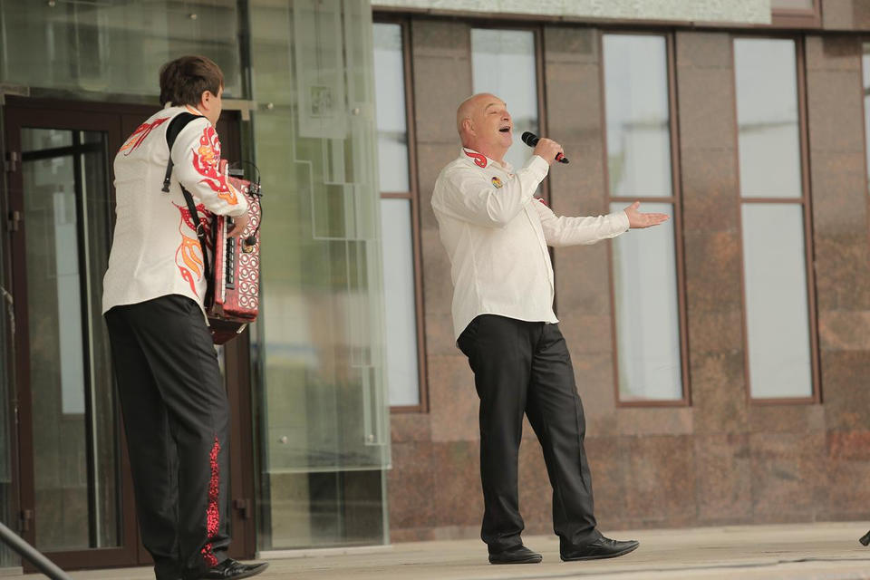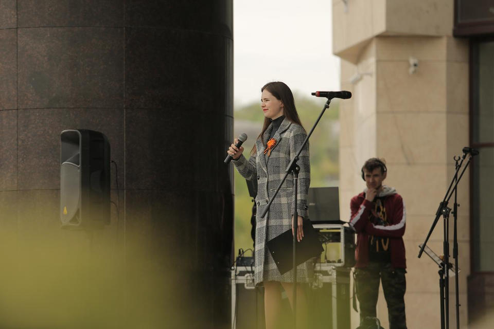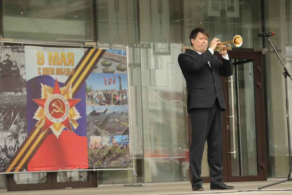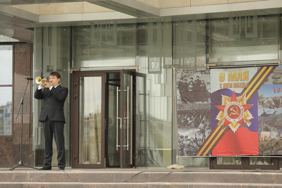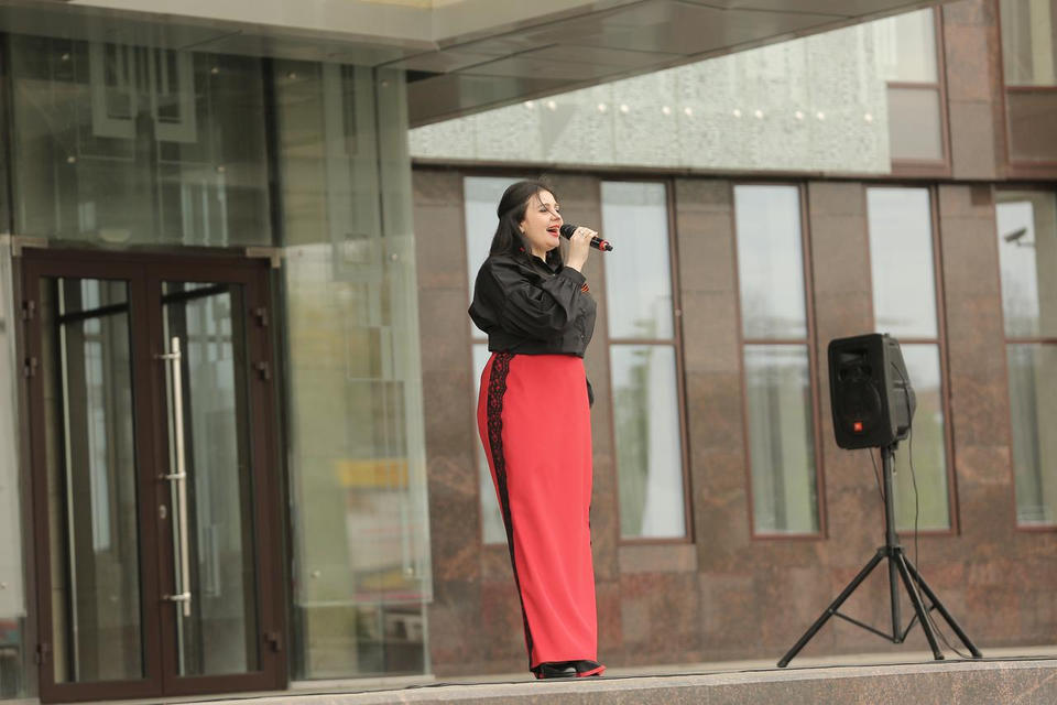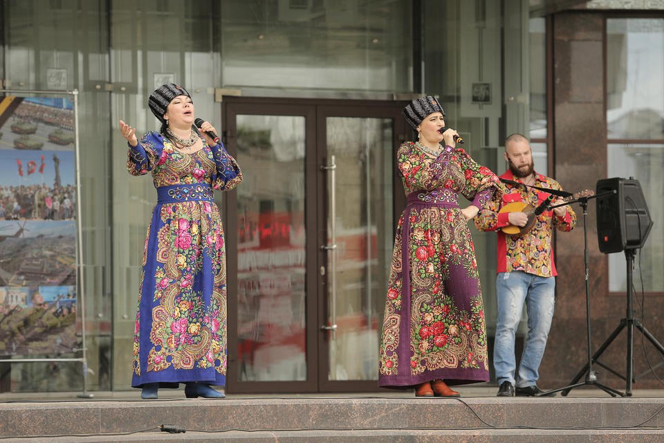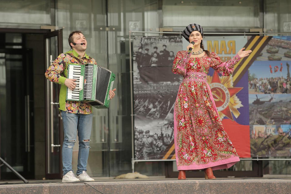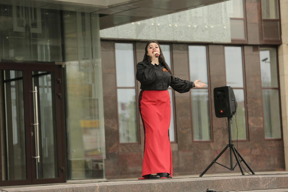 В День Победы на площади возле центрального входа в здание филармонии артисты «Пензаконцерта» выступили с программой «Песни, опалённые войной…».