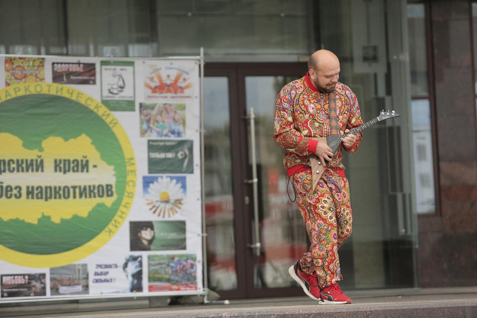 Для жителей и гостей Пензы выступил солист «Пензаконцерта», балалаечник-виртуоз Иван Нивин.
