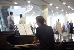 Гостей вечера в фойе филармонии музыкант эстрадно-джазового ансамбля «Экспресс-бэнд» Геннадий Купринович (фортепиано) с музыкальной программой из цикла «Добро пожаловать!».