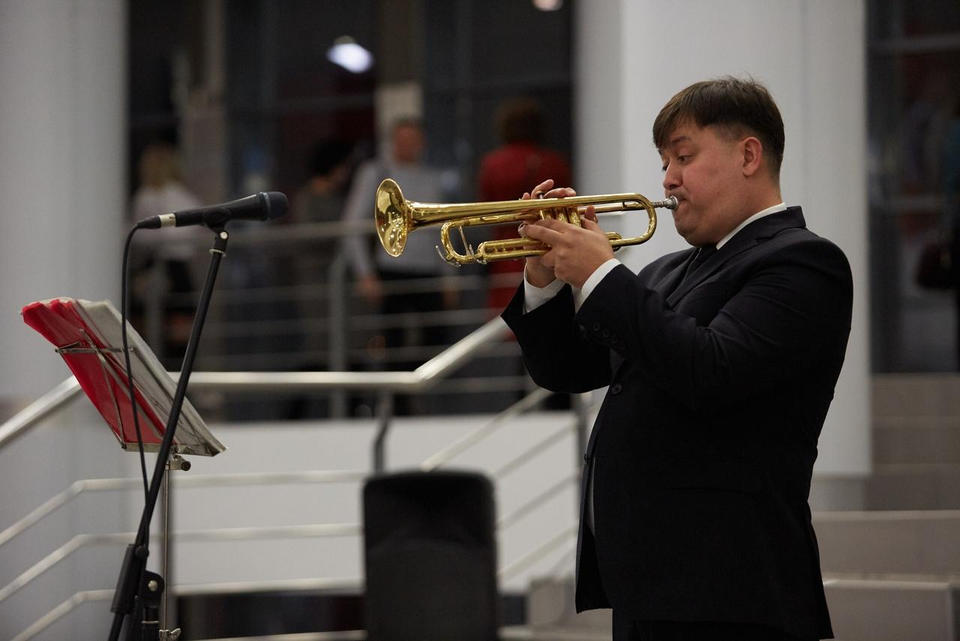 Перед концертом Алессандро Сафина зрителей с программой «Добро пожаловать!» встречал Юрий Белоногов (труба).