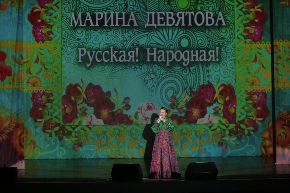 Марина Девятова выступила 10 февраля в Киноконцертном зале «Пенза». Известная российская певица вместе с шоу-балетом ЯR-DANCE представила программу «Русская душой».