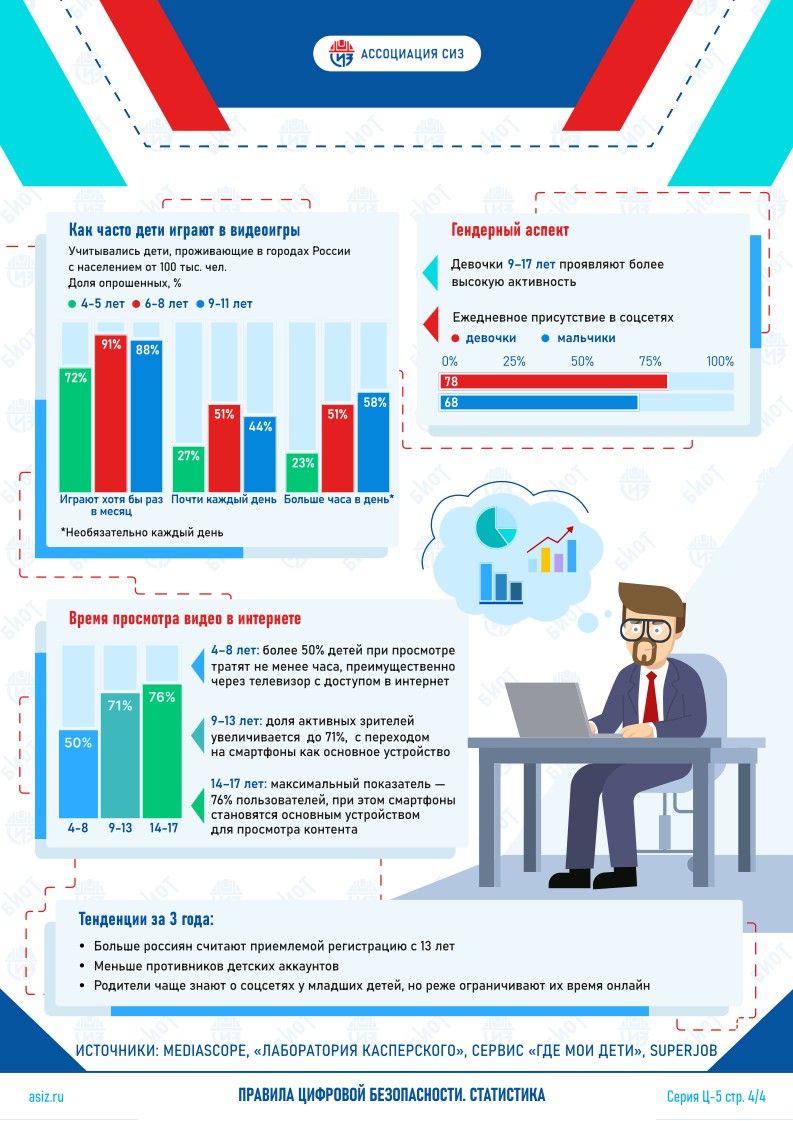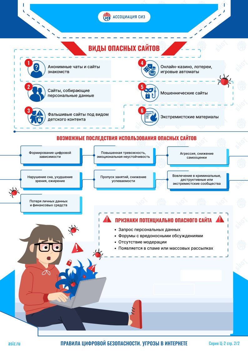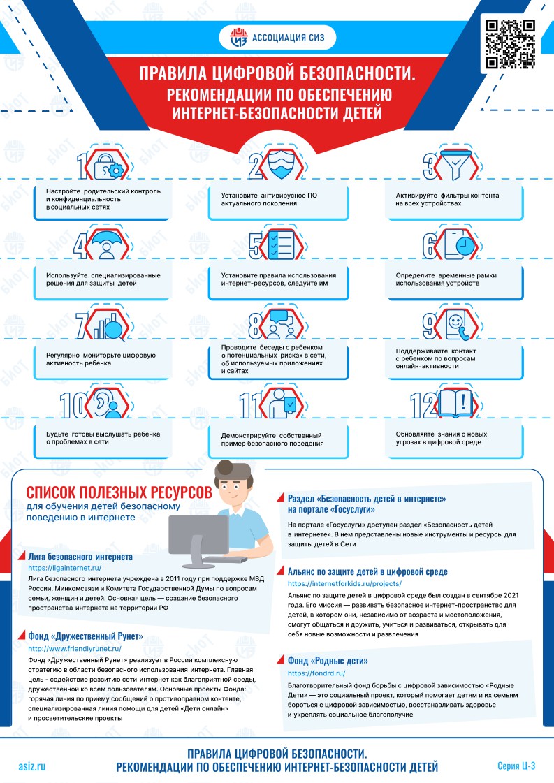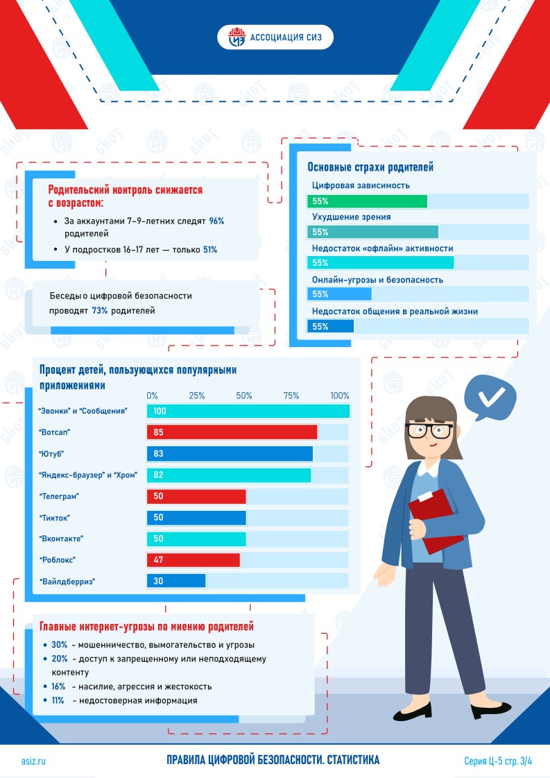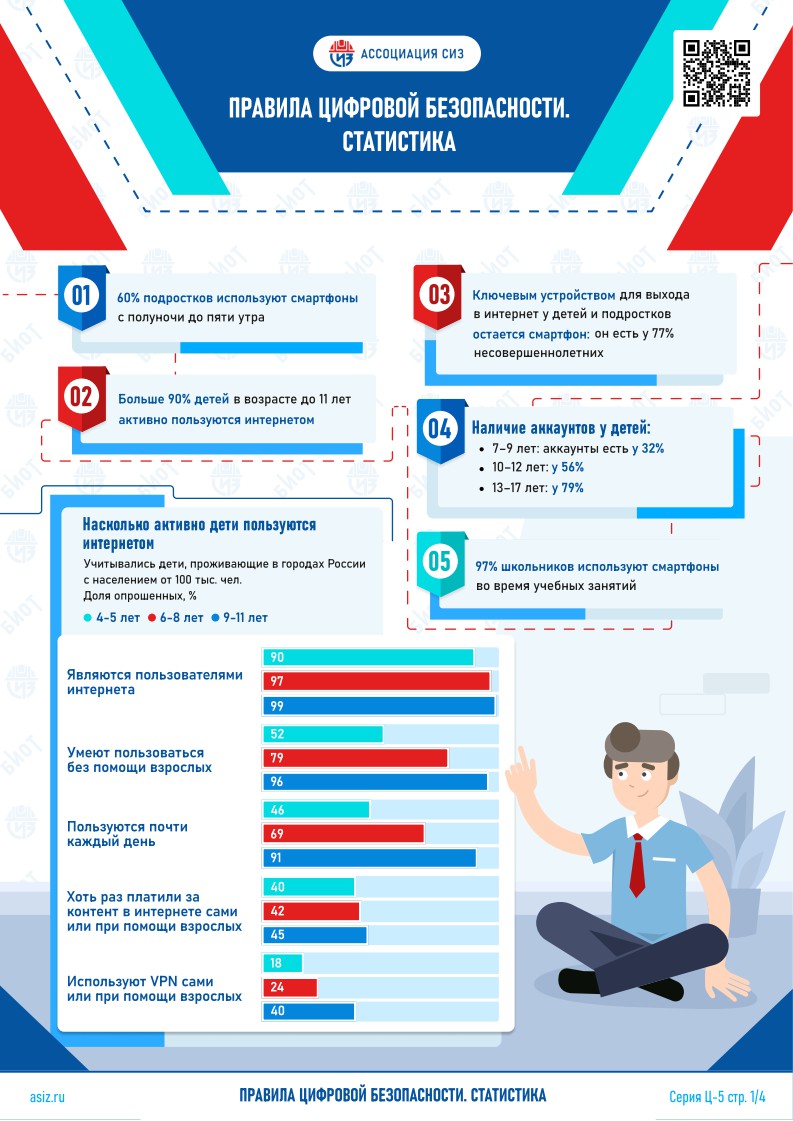 Ассоциация разработчиков, изготовителей и поставщиков средств индивидуальной защиты (Ассоциация «СИЗ») в связи с началом нового учебного года, а значит еще одного года активной цифровой жизни миллионов детей и подростков, подготовила серию инфографик по цифровой безопасности.