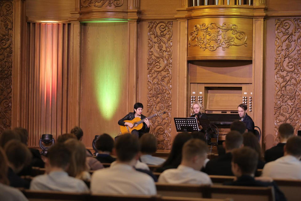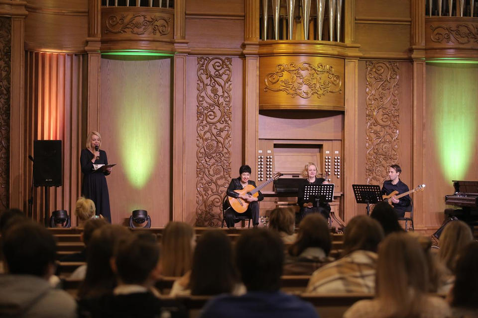 Музыкальное путешествие вокруг света совершили пензенские школьники 10 декабря. С оригинальной и разнообразной музыкальной программой в Органном зале филармонии выступил творческий коллектив «Экспромт» (руководитель – Заслуженная артистка России Людмила Лузгина).