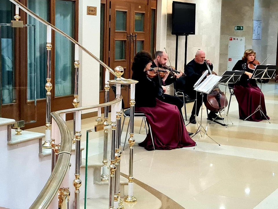 В фойе гостей с программой «Добро пожаловать!» встречал струнный квартет «Премьера».