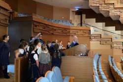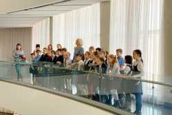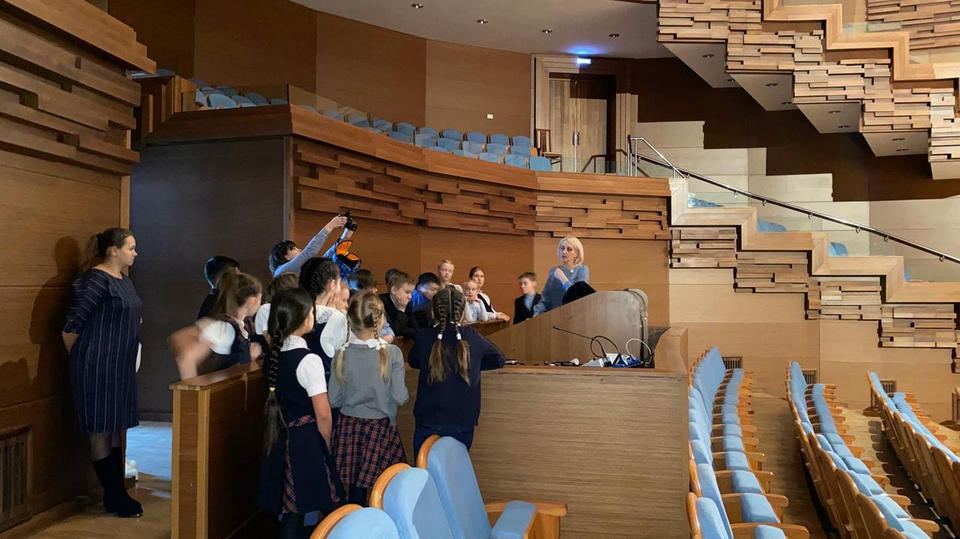 В рамках экскурсионного маршрута ребята познакомились с особенностями архитектуры и дизайна здания, посетили концертные залы, постояли на сцене и заглянули за кулисы.