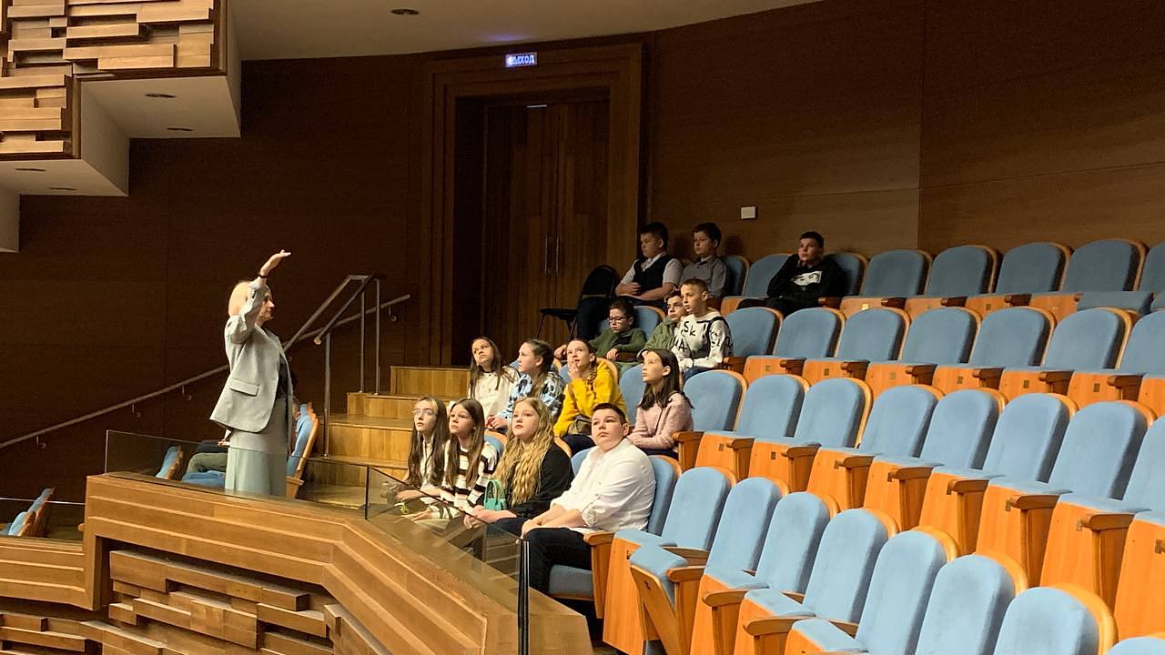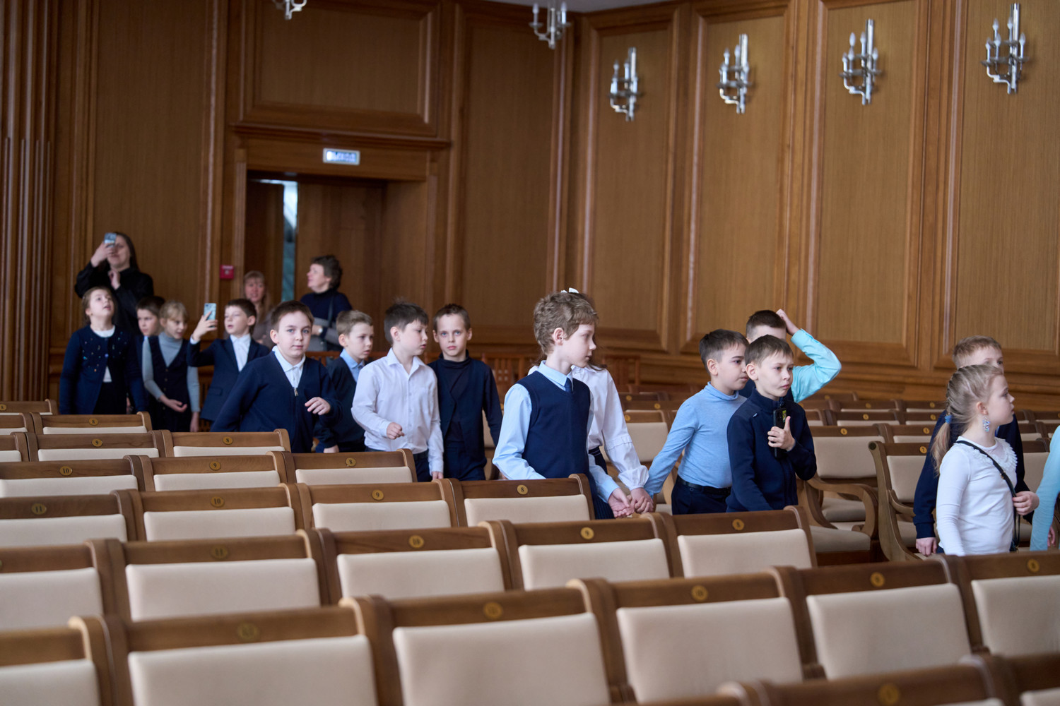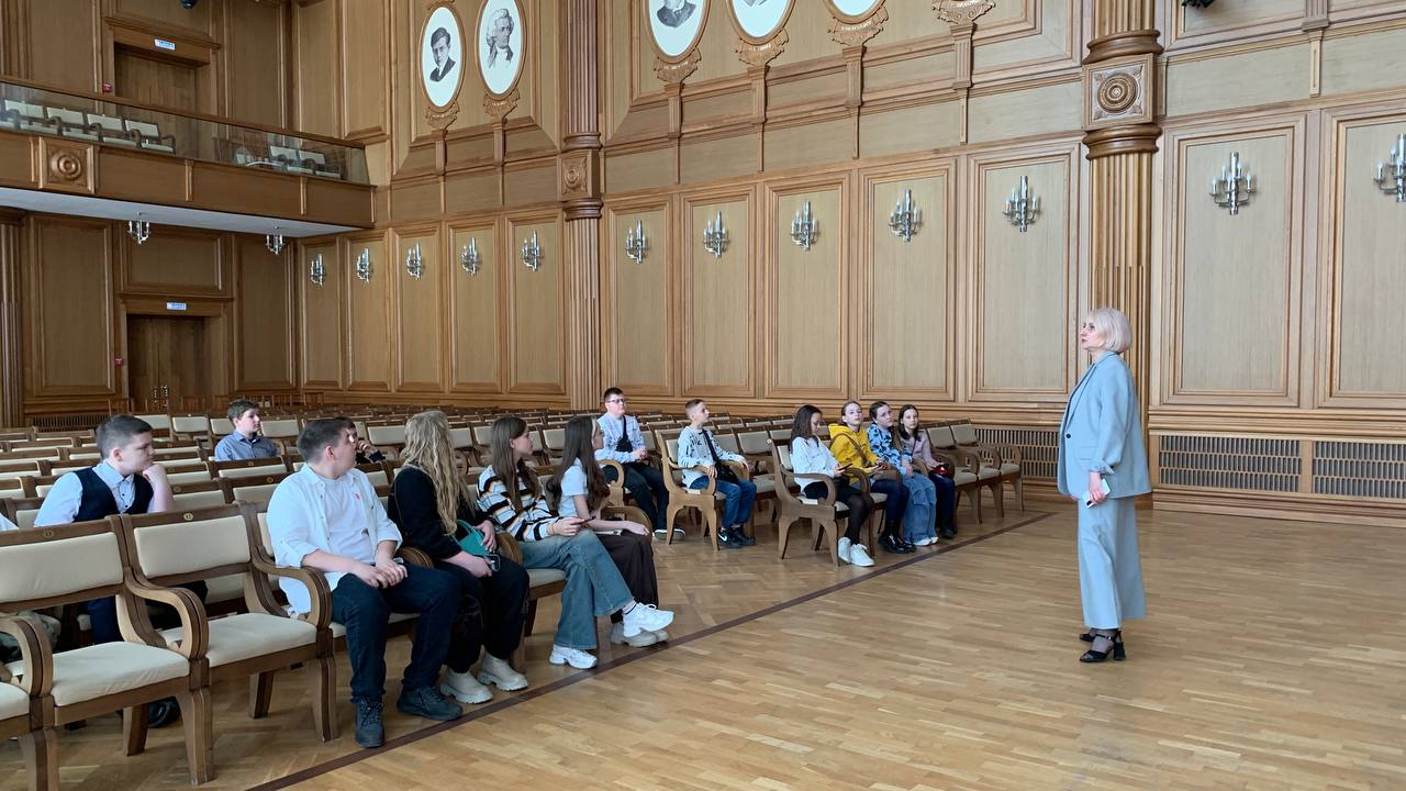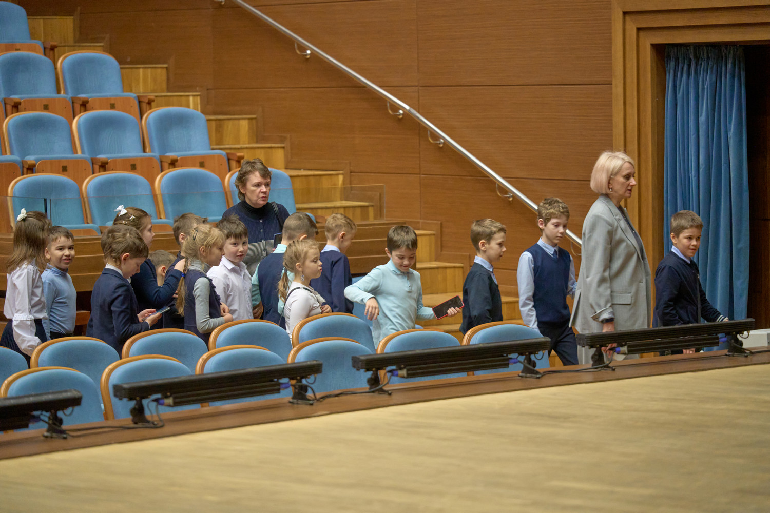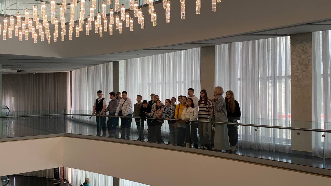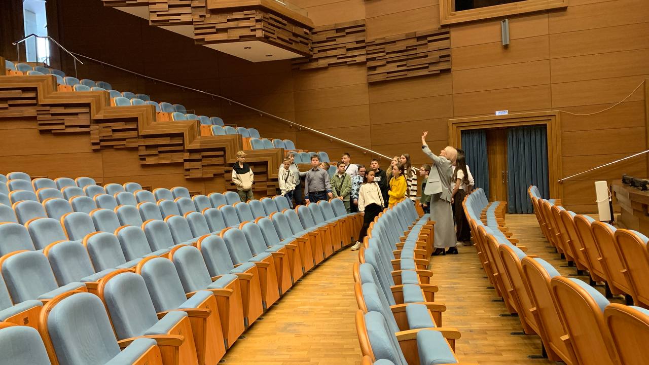 В рамках экскурсионного маршрута ребята побывали в просторных фойе и концертных залах филармонии, поднялись на сцену и заглянули за кулисы, узнали интересные факты об архитектурных и стилистических особенностях здания, о техническом оснащении и специальном акустическом проекте.
