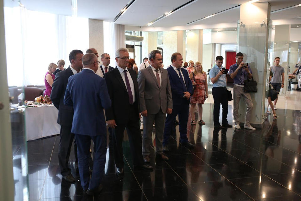 В фойе филармонии работала выставка продукции пензенских предприятий лёгкой и текстильной промышленности региона.