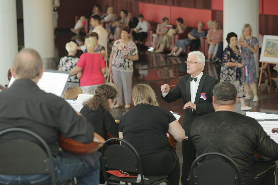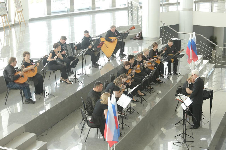 В фойе Киноконцертного зала работали тематические выставки и фотозоны под музыкальное сопровождение в исполнении русского народного оркестра «Пенза» им. В.Н. Попова.