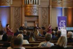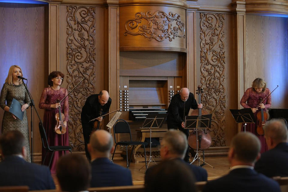Торжество продолжилось концертной программой, участие в которой приняли Софья Семьянова (орган), струнный квартет «Премьера» и солистка Губернаторской симфонической капеллы Гульсина Рафекова, артисты ансамбля «Злато-Серебро» – Наталья Мещерякова, Илья Антонов, Карина Мещерякова и Александр Шмырёв, солисты эстрадно-джазового ансамбля «Экспресс-бэнд» – Светлана Бисяева, Анастасия Воробьёва и Александр Яковлев.