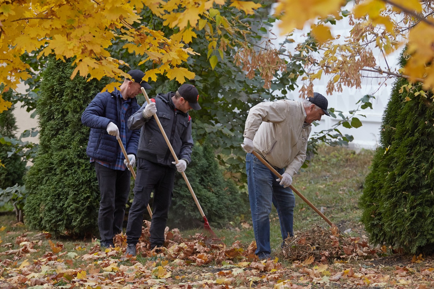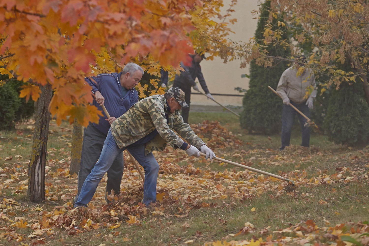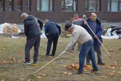 С помощью подручного инвентаря произвели очистку газонов от сухой травы и опавших листьев, а тротуары убрали от мелкого мусора и пыли.