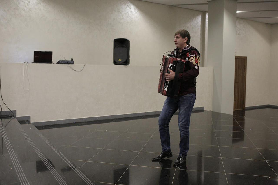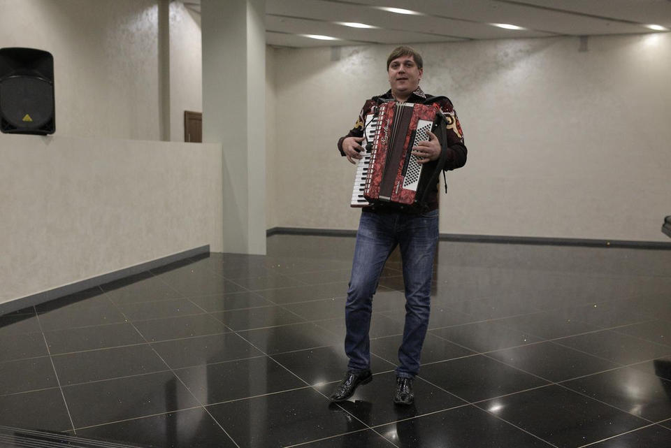 Перед концертом Татьяны Стаильской зрителей с программой «Добро пожаловать!» встречал Александр Липикин (аккордеон).
