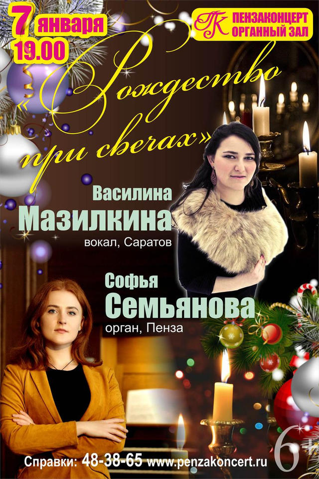 7 января в Органном зале филармонии с праздничной программой выступят солистка «Пензаконцерта» Софья Семьянова (орган) и Василина Мазилкина (вокал, г. Саратов).