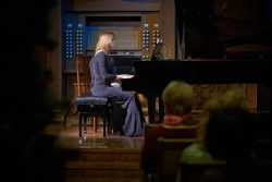 В исполнении пианистки прозвучали «Итальянский концерт» Иоганна Себастьяна Баха, сюита «Pour le piano» Клода Дебюсси и цикл пьес «Картинки с выставки» Модеста Мусоргского.