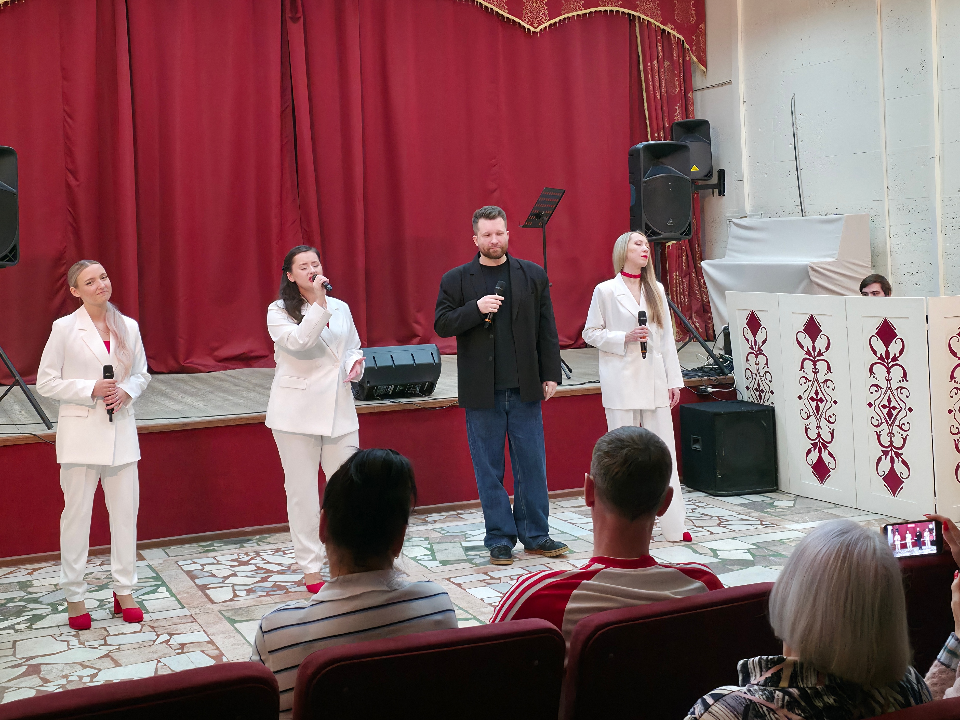 11 февраля в ПВР, расположенном в санатории им. В.В. Володарского, с концертной программой выступили солисты ансамбля «Экспресс-бэнд» Светлана Бисяева, Александр Яковлев, Ксения Овчинникова и Екатерина Петрунина.
