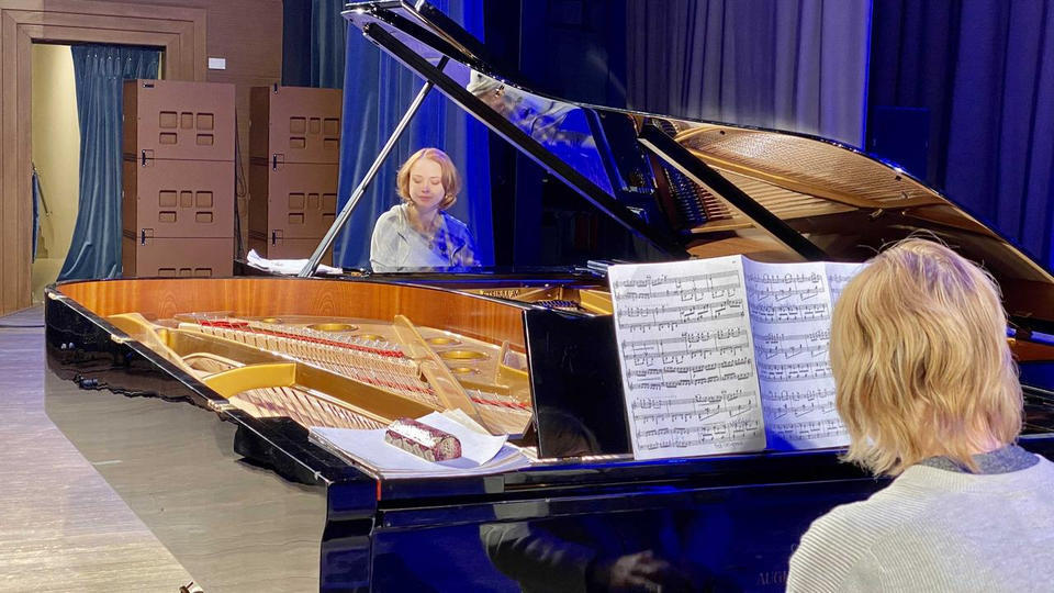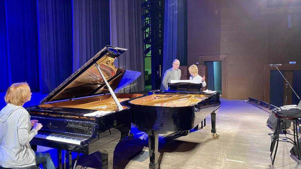 Финальные репетиции к концертной программе «Вокруг света за 80 минут» (6+) проводятся в Большом зале филармонии.