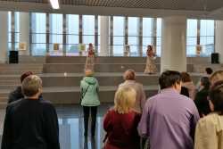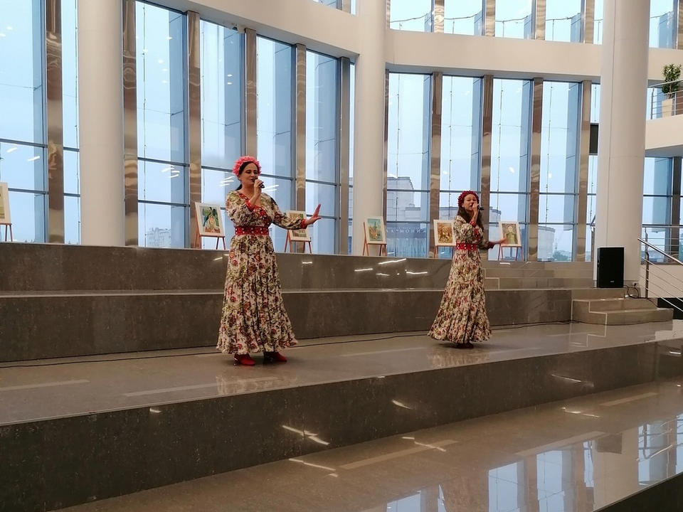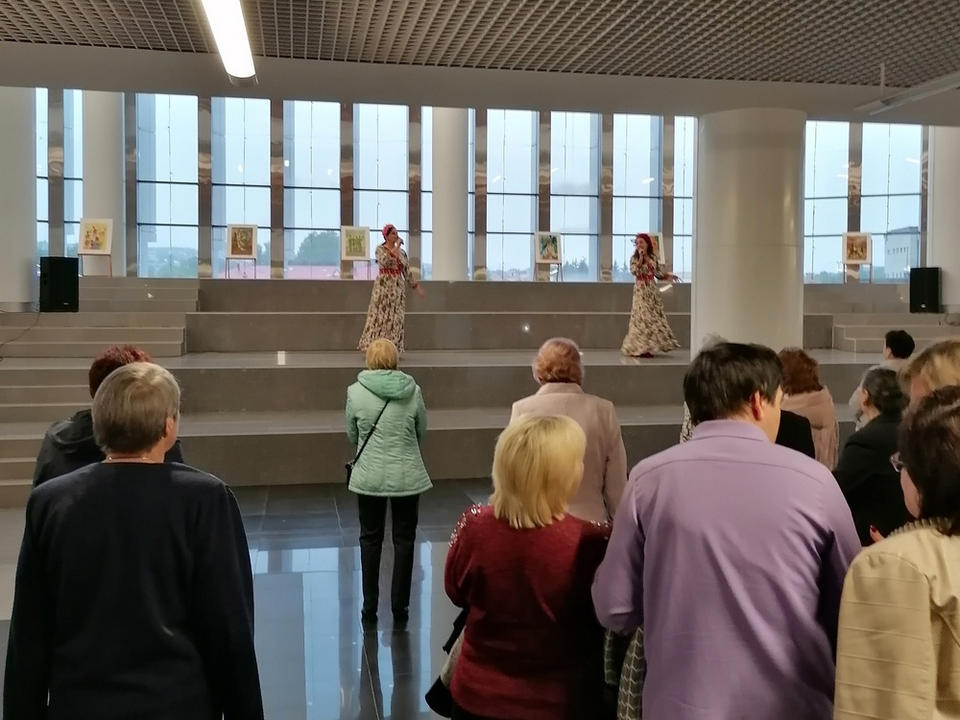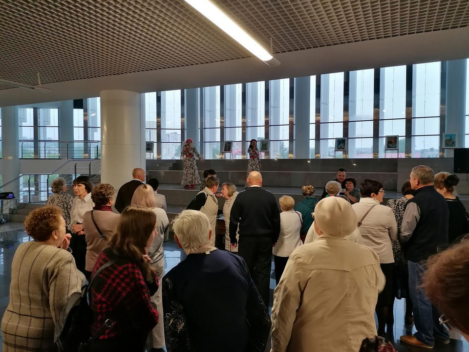 Перед началом концерта в фойе ККЗ зрителей встречали солистки ансамбля «Злато-Серебро» с концертной программой в рамках концертных мероприятий «Добро пожаловать».
