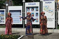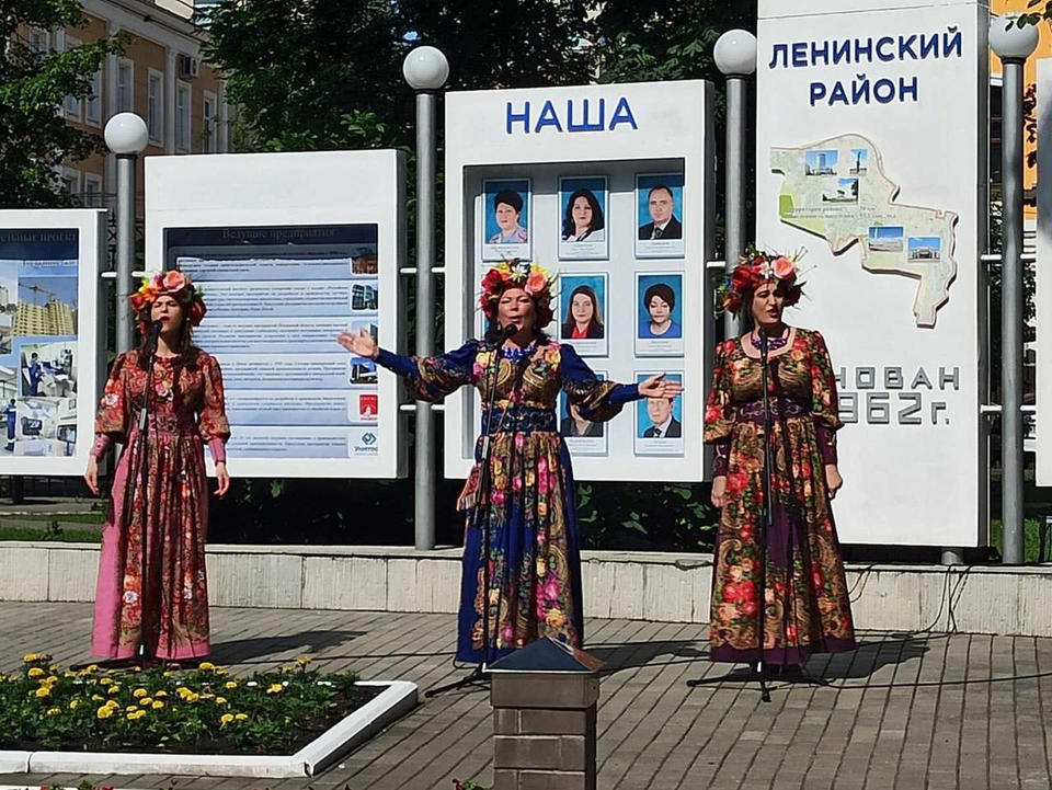 Солистки ансамбля «Злато-Серебро» – Заслуженный работник культуры Пензенской области Наталья Мещерякова, Елена Миронычева и Карина Мещерякова – выступили на церемонии открытия обновлённой Доски Почёта Ленинского района города Пензы.