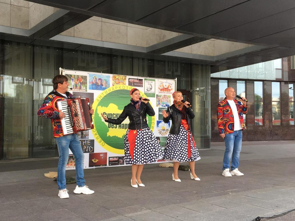 12 сентября с программой «Музыка против наркотиков» на открытой площадке перед центральным входом в здание филармонии выступил ансамбль «Горница».