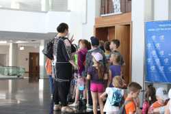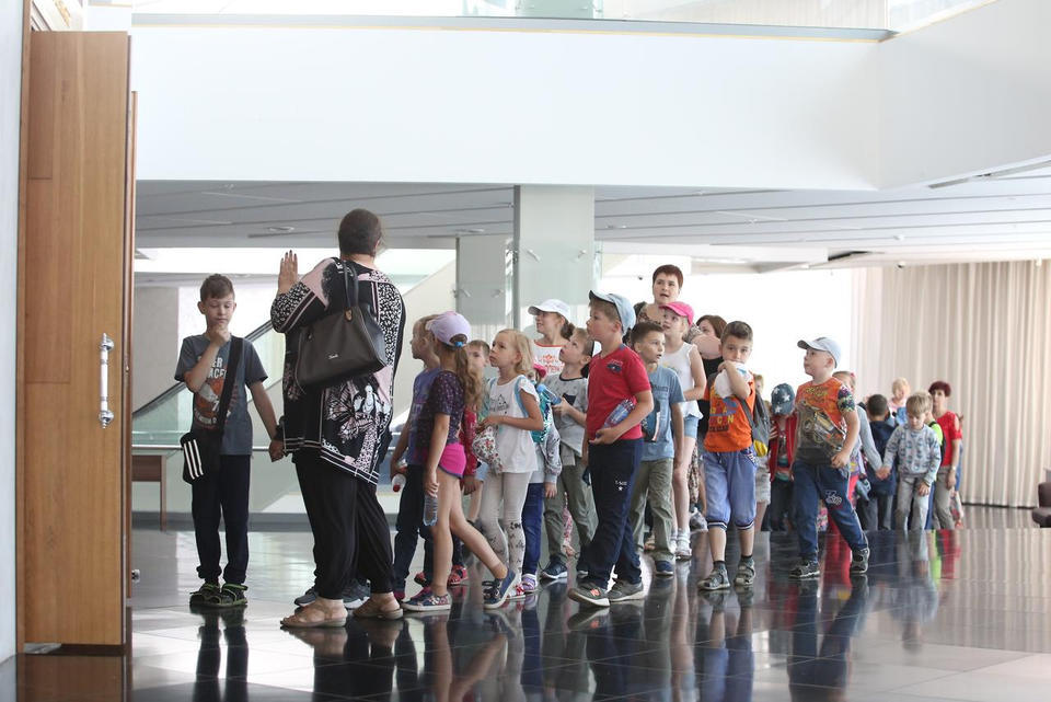 Перед спектаклем ребят с программой «Добро пожаловать!» встречал солист ансамбля «Губернiя» Виктор Климов.