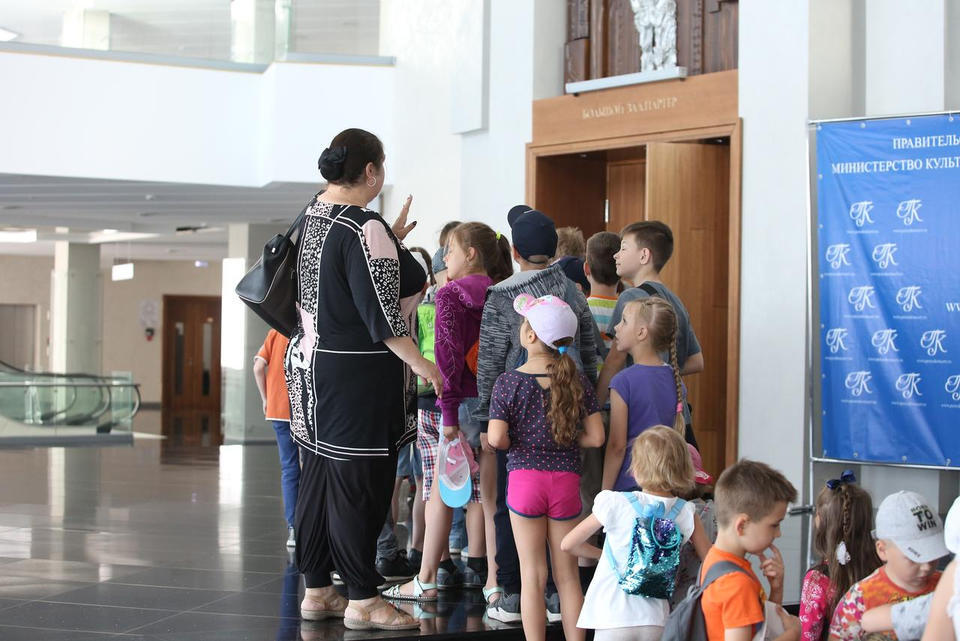 В качестве зрителей – ребята, посещающие летние пришкольные лагеря. Им музыкальный спектакль, созданный по мотивам произведения «Волшебное кольцо», пришёлся по душе.