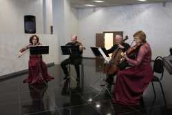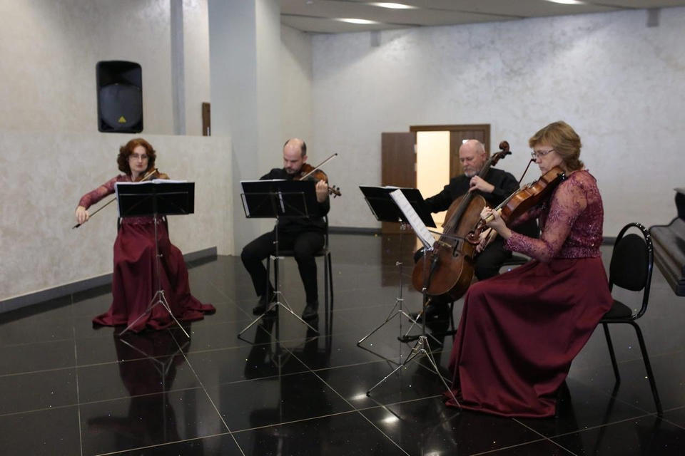 Перед концертом гостей с программой «Добро пожаловать!» встречал струнный квартет «Премьера».