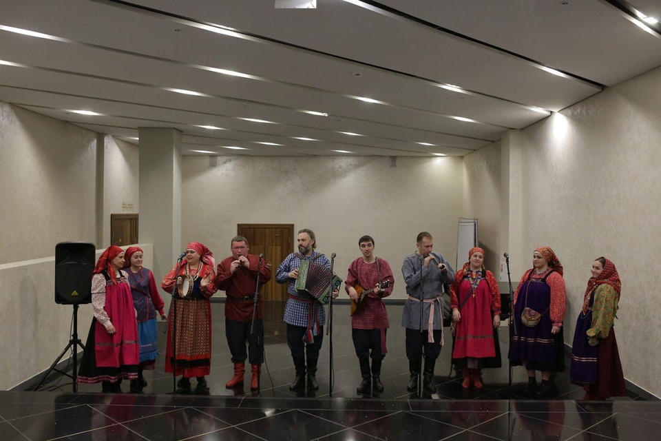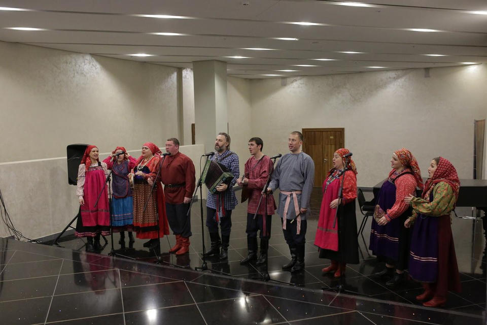 Перед концертом зрителей с программой «Добро пожаловать!» встречал ансамбль русской этнической музыки «Миряне».