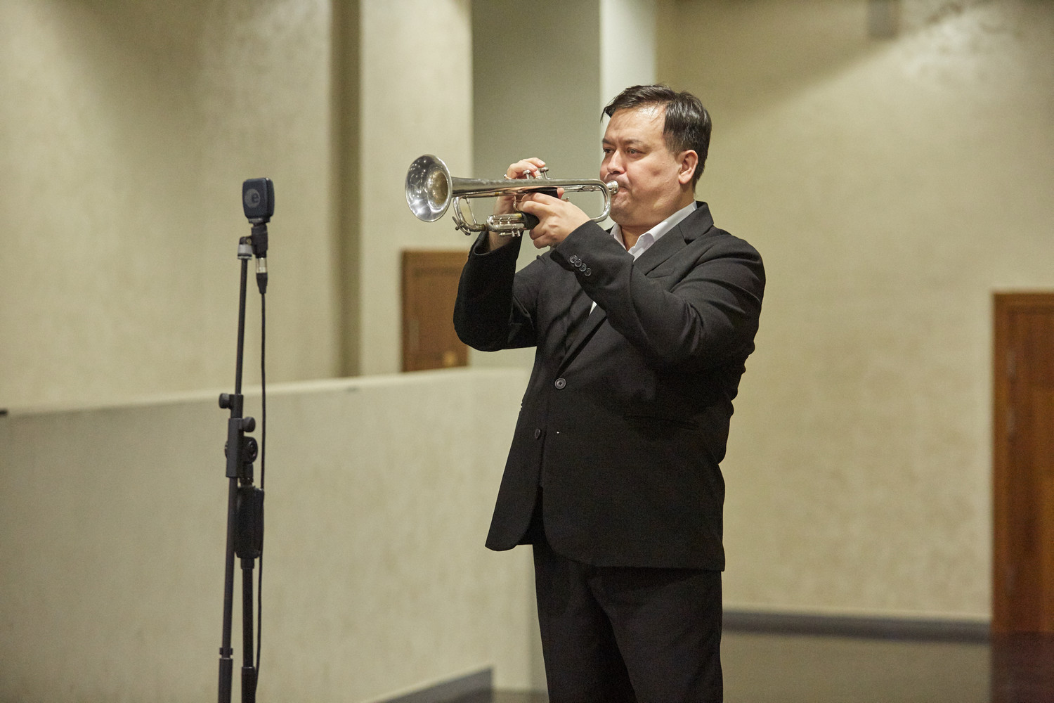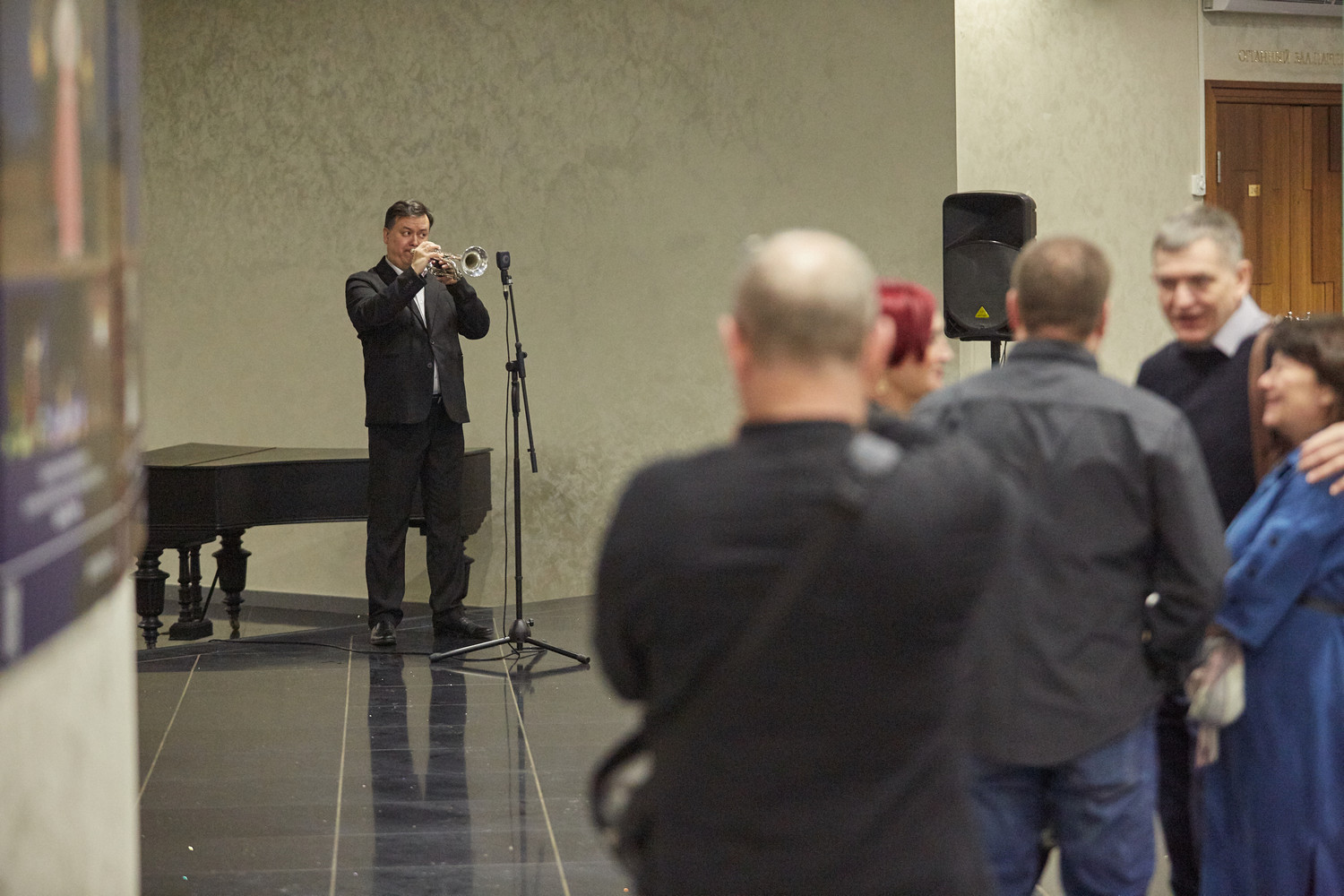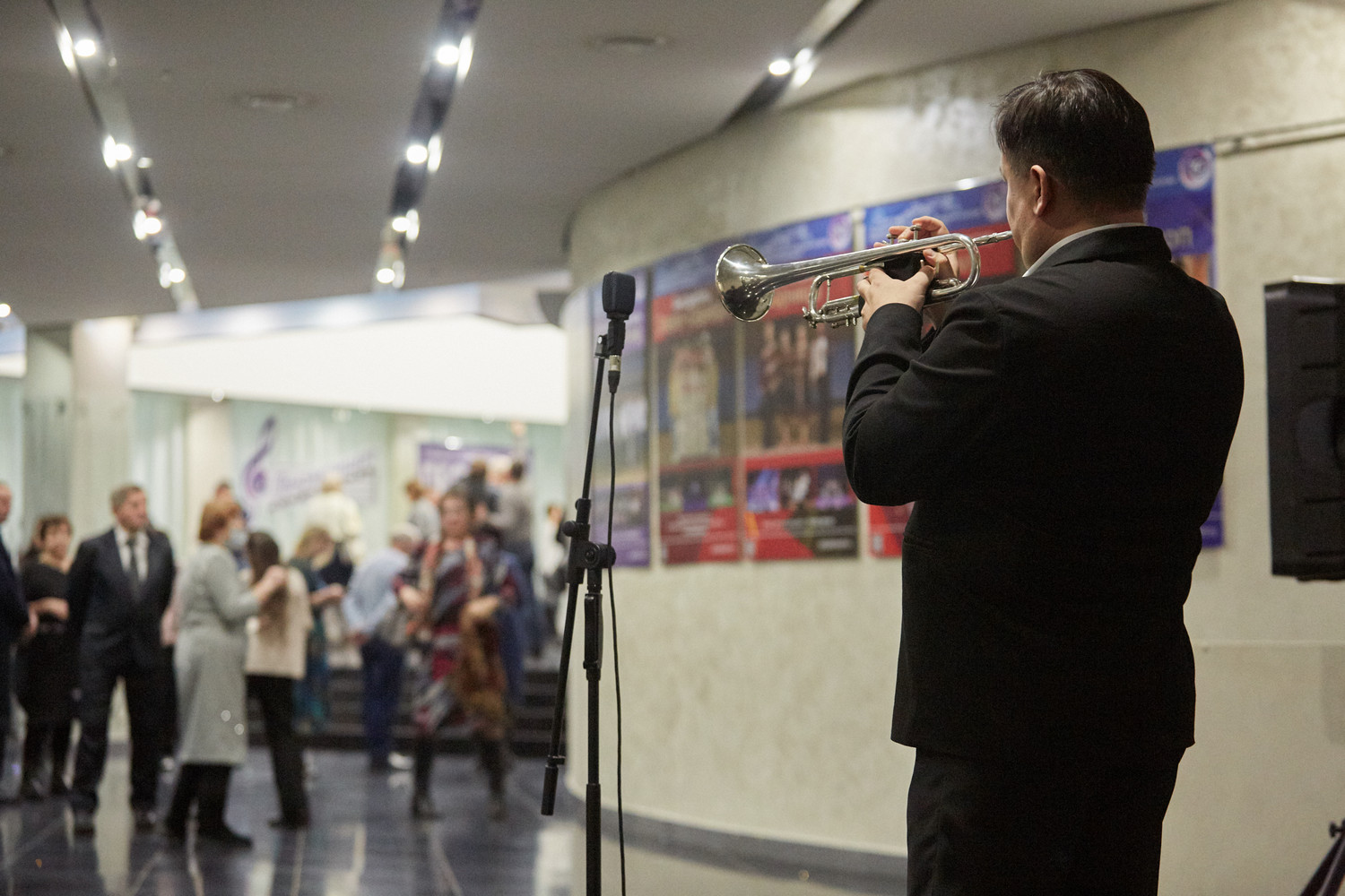 Перед концертом в фойе филармонии гостей «Пензаконцерта» встречал руководитель эстрадно-джазового ансамбля «Экспресс-бэнд» Юрий Белоногов (труба) с музыкальной программой из цикла «Добро пожаловать!».