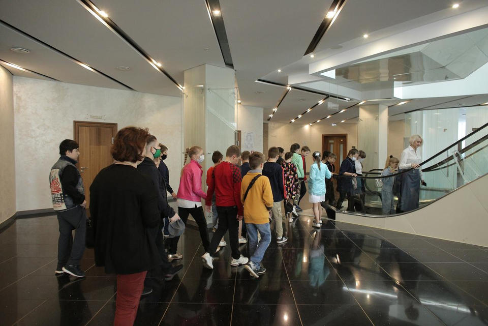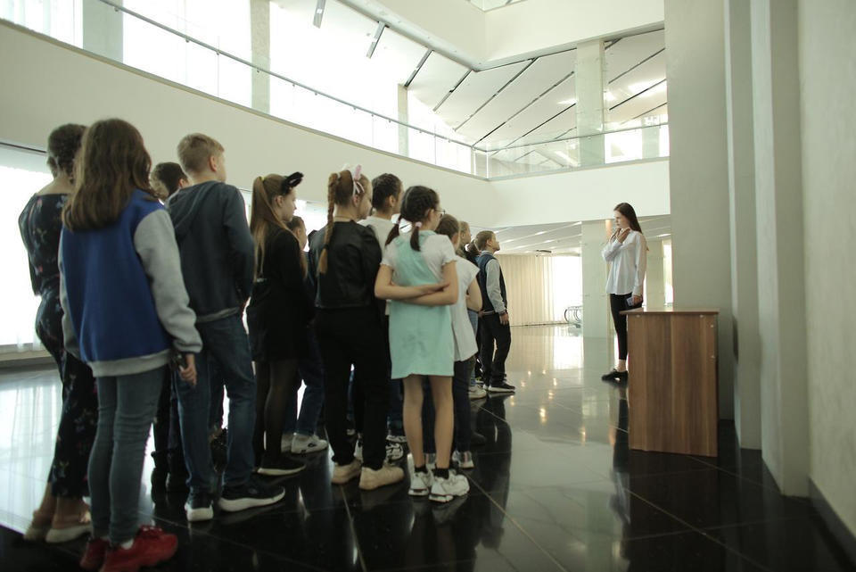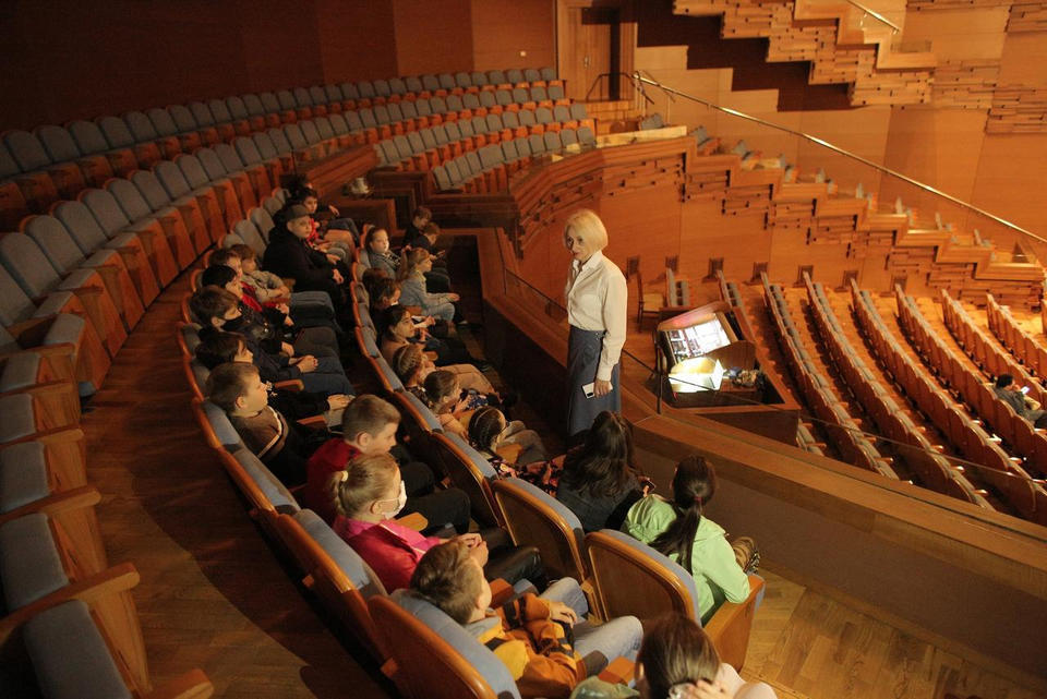 В ходе экскурсии ребята посмотрели выставку работ пензенских художников, расположенную на первом этаже, узнали интересные факты об архитектурных и стилистических особенностях здания филармонии.