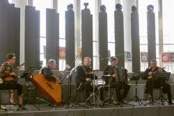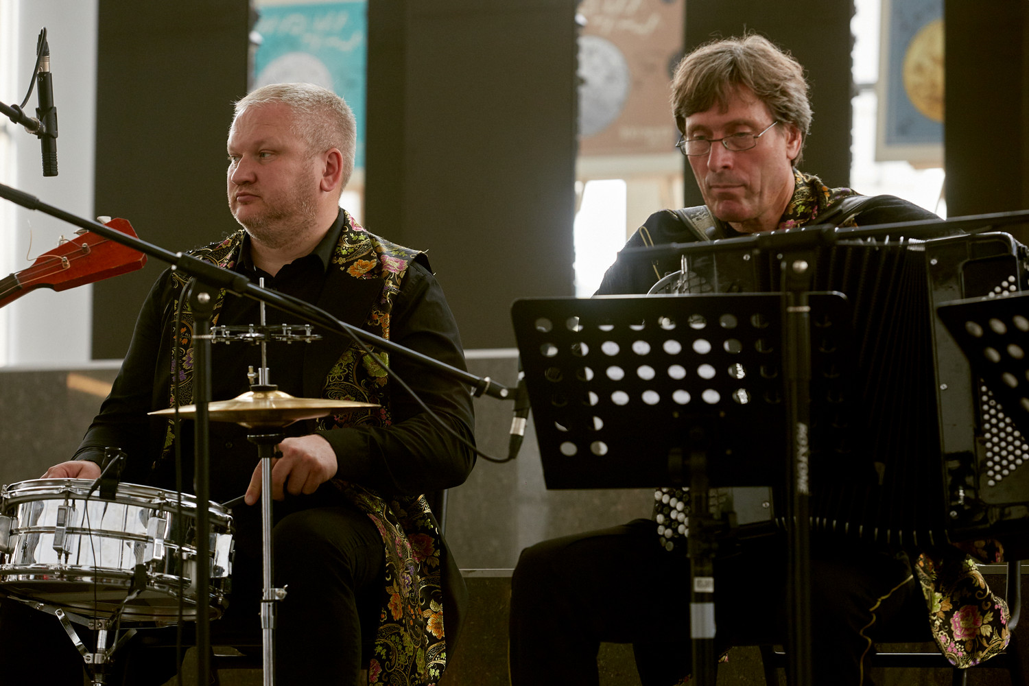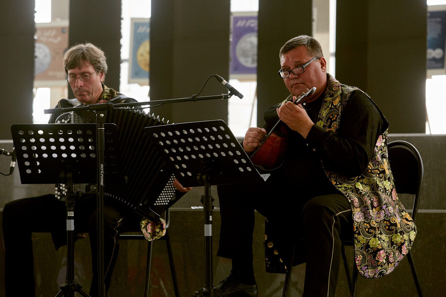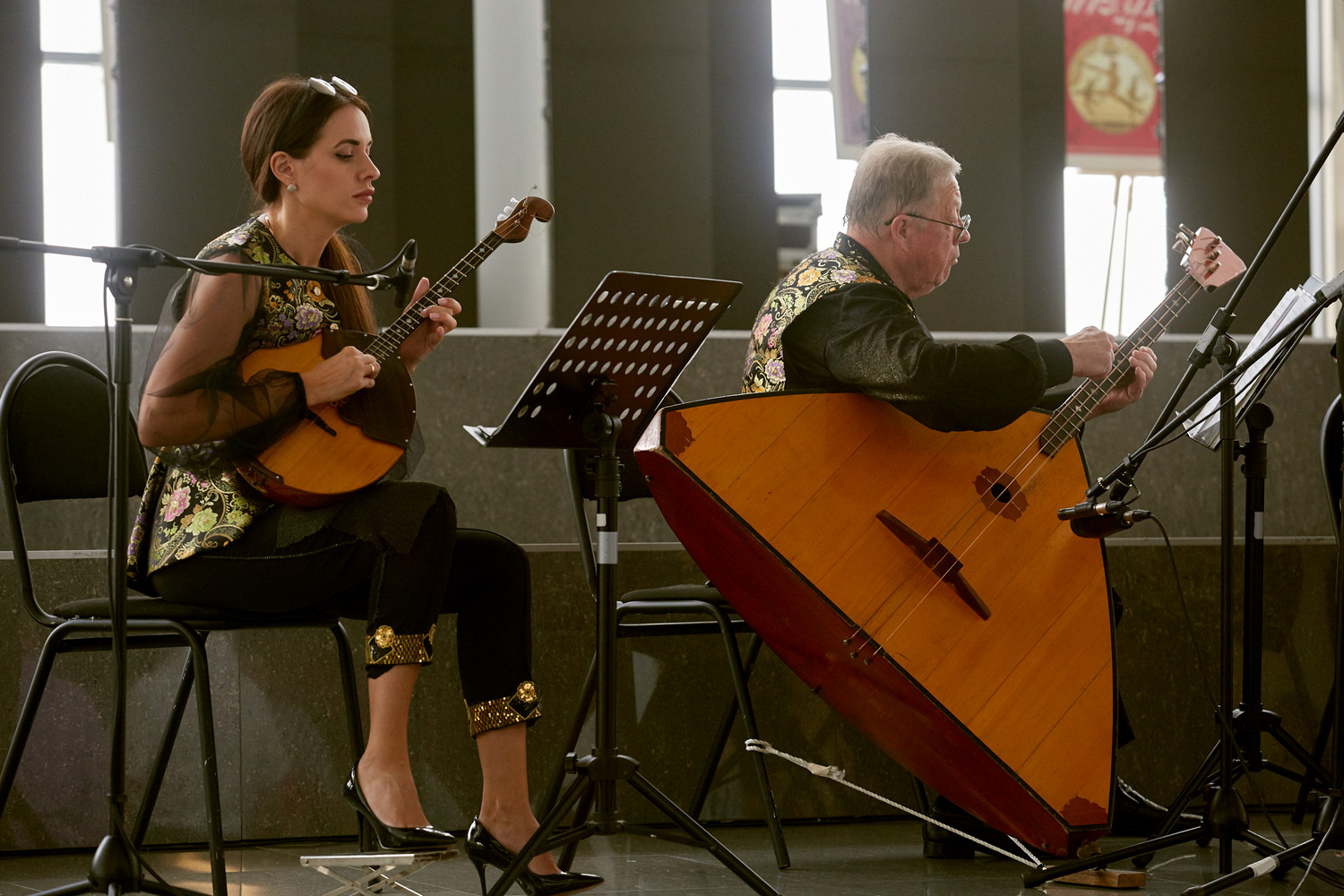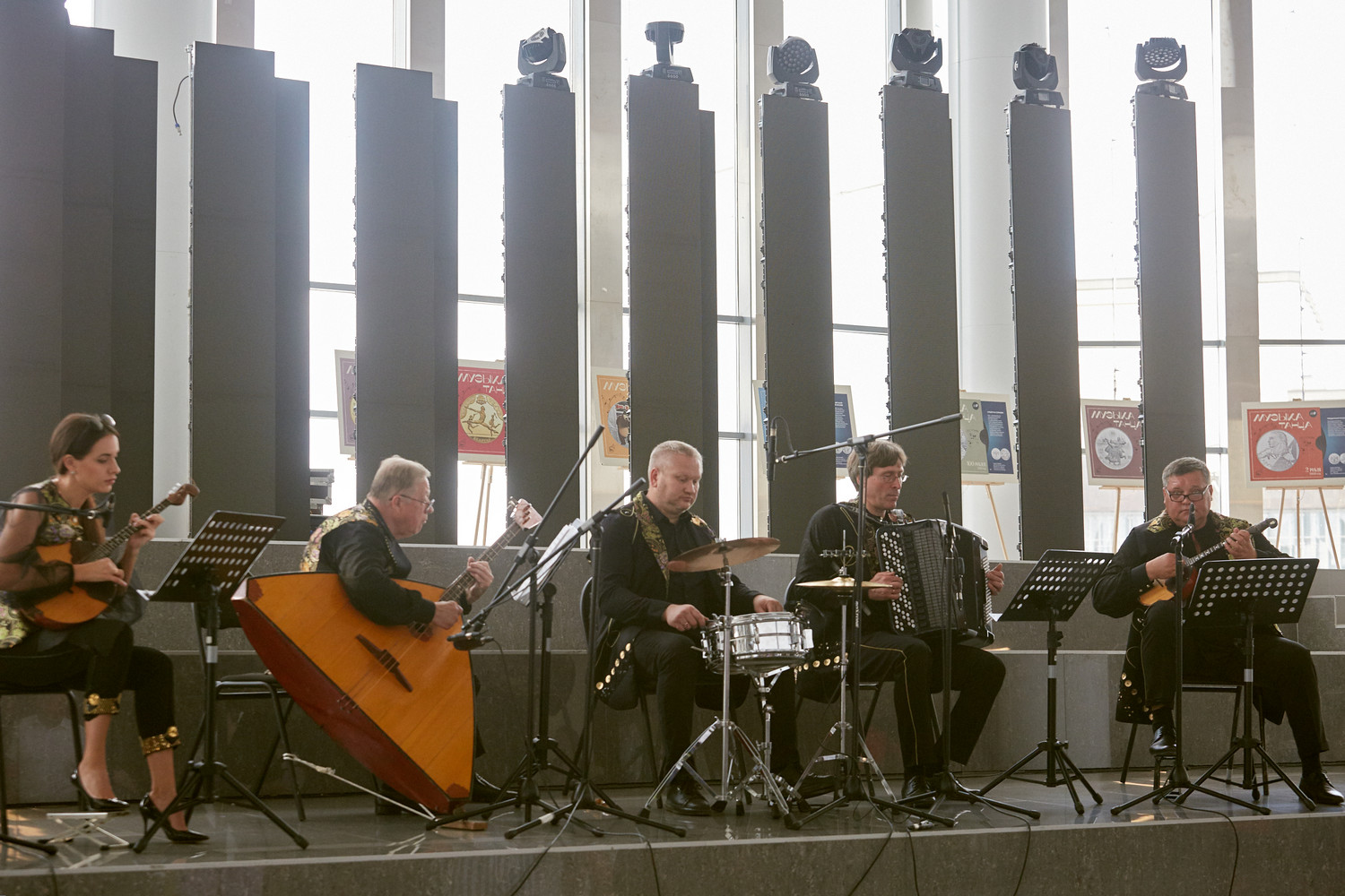 В фойе гостей мероприятия встречал с музыкальной программой ансамбль русских народных инструментов «Губерния».