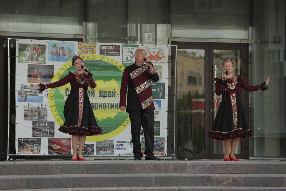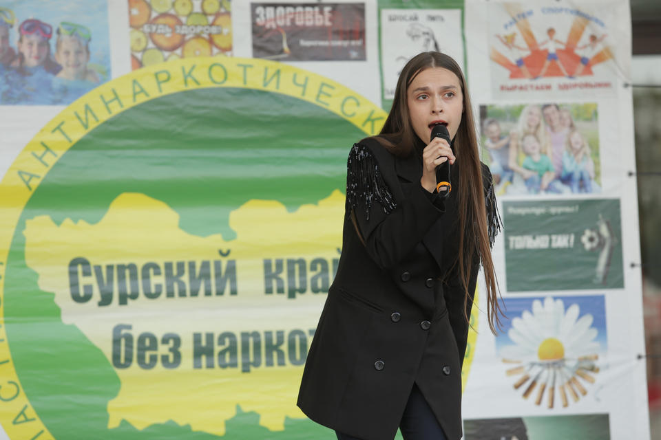 «Пензаконцерт» продолжает концертные программы в рамках акции «Сурский край без наркотиков», 14 сентября на центральном входе в филармонию выступили ансамбль "Горница", артистка академического хора Губернаторской капеллы Елизавета Лисина и артистка группы "Калейдоскоп" Ольга Рылина