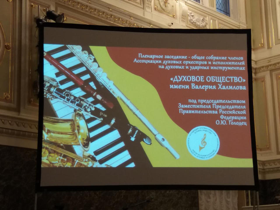 Ежегодное собрание Ассоциации «Духовое общество» имени Валерия Халилова под председательством Заместителя Председателя Правительства РФ Ольги Голодец в этом году посвящено развитию образования в области духового исполнительства и деятельности муниципальных творческих коллективов. Модератором собрания выступает президент Ассоциации Михаил Брызгалов.
