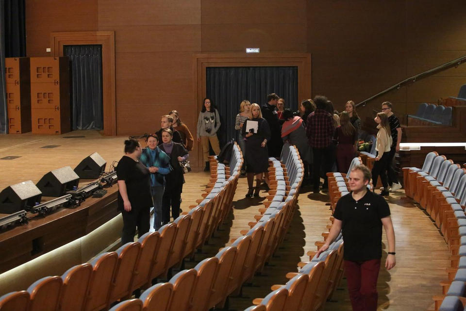 В ходе экскурсии гости заглянули в Большой зал филармонии, понаблюдали за работой звукооператора, посмотрели проходящую здесь репетицию, постояли на сцене, сделали фото на память.