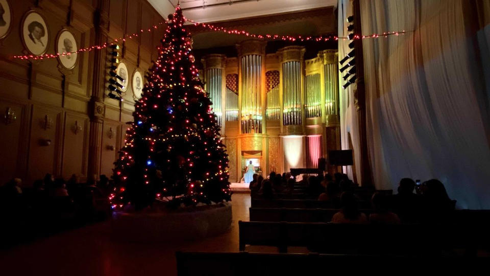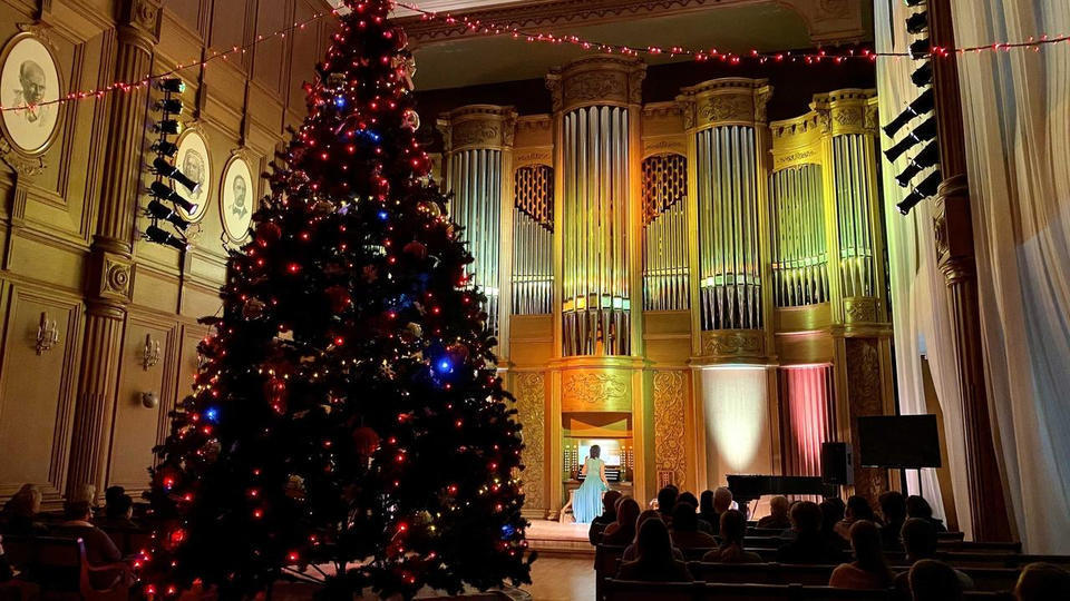 Также Мария Блажевич порадовала зрителей фантазией на темы известных новогодних и рождественских композиций «Carol of the bells», «Jingle bells», «We wish you merry Christmas» Дж. Скотта.