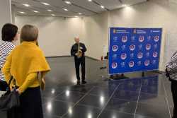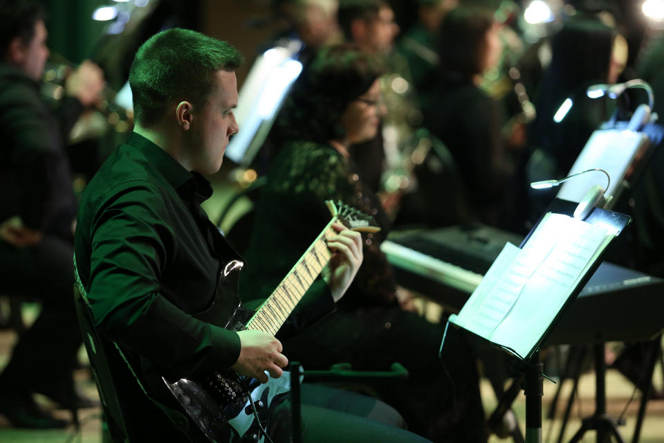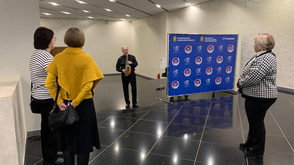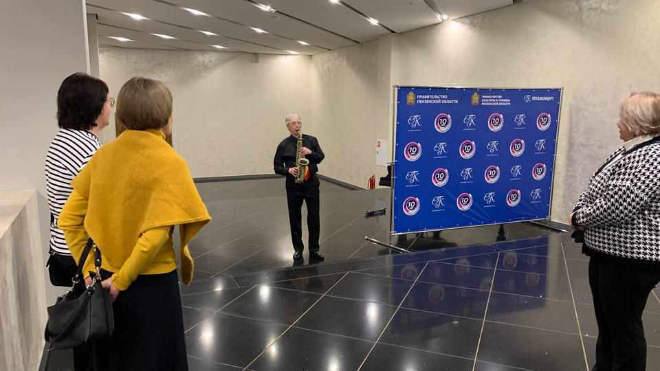 Гостей вечера с музыкальной программой «Добро пожаловать!» встречал музыкант эстрадно-джазового ансамбля «Экспресс-бэнд» Дмитрий Киселев (саксофон).