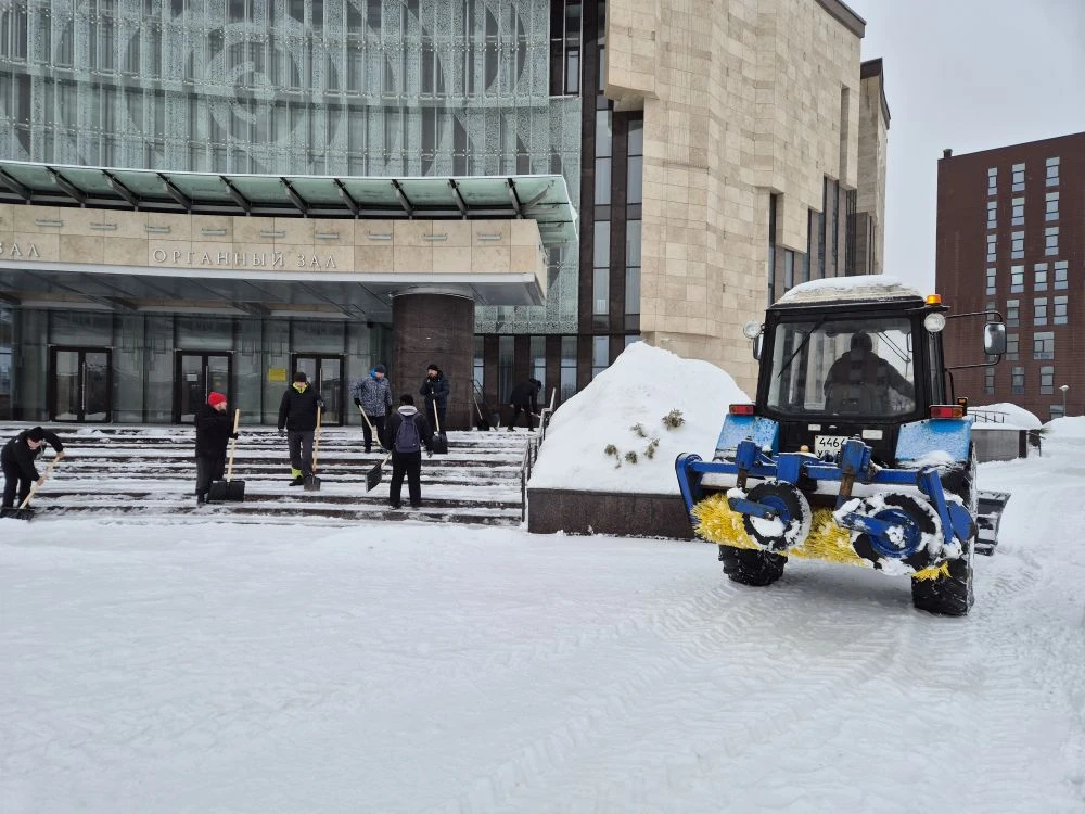Особое внимание уделяем безопасности и комфорту гостей: тщательно расчищаем пешеходные дорожки и зоны у центральных входов в филармонию и киноконцертный зал «Пенза».