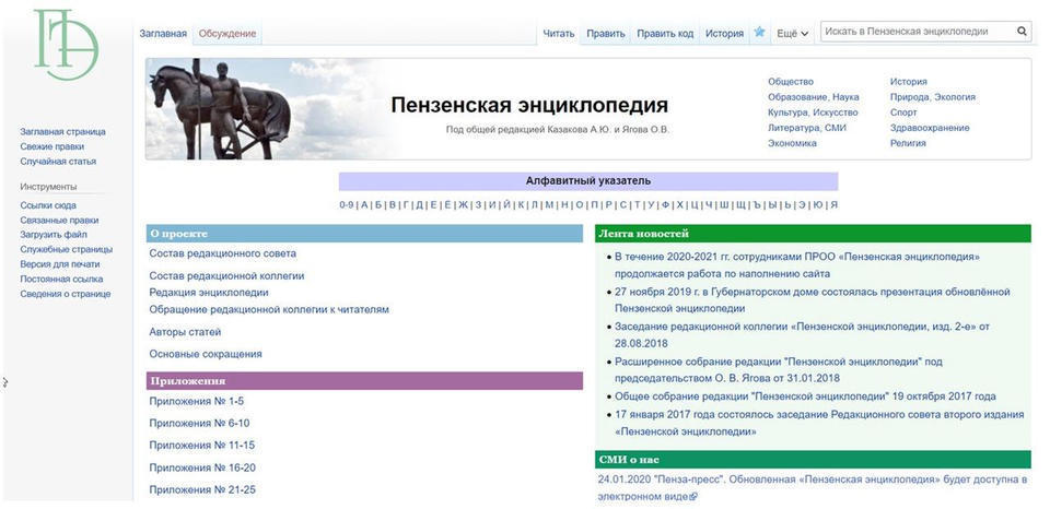 На сайте Пензенской энциклопедии представлены как обзорные статьи, раскрывающие специфику общественно-политического, экономического развития и историко-культурного наследия края, так и краткие материалы, в которых даётся небольшая справка о том или ином объекте или термине.