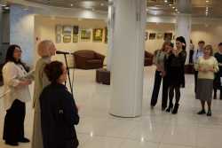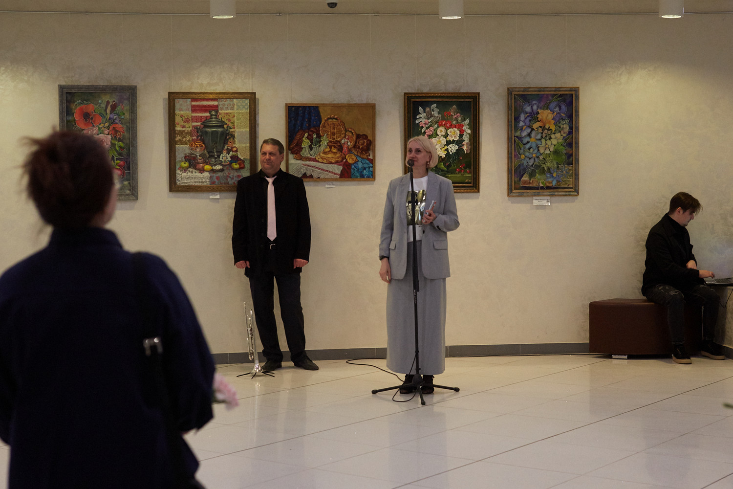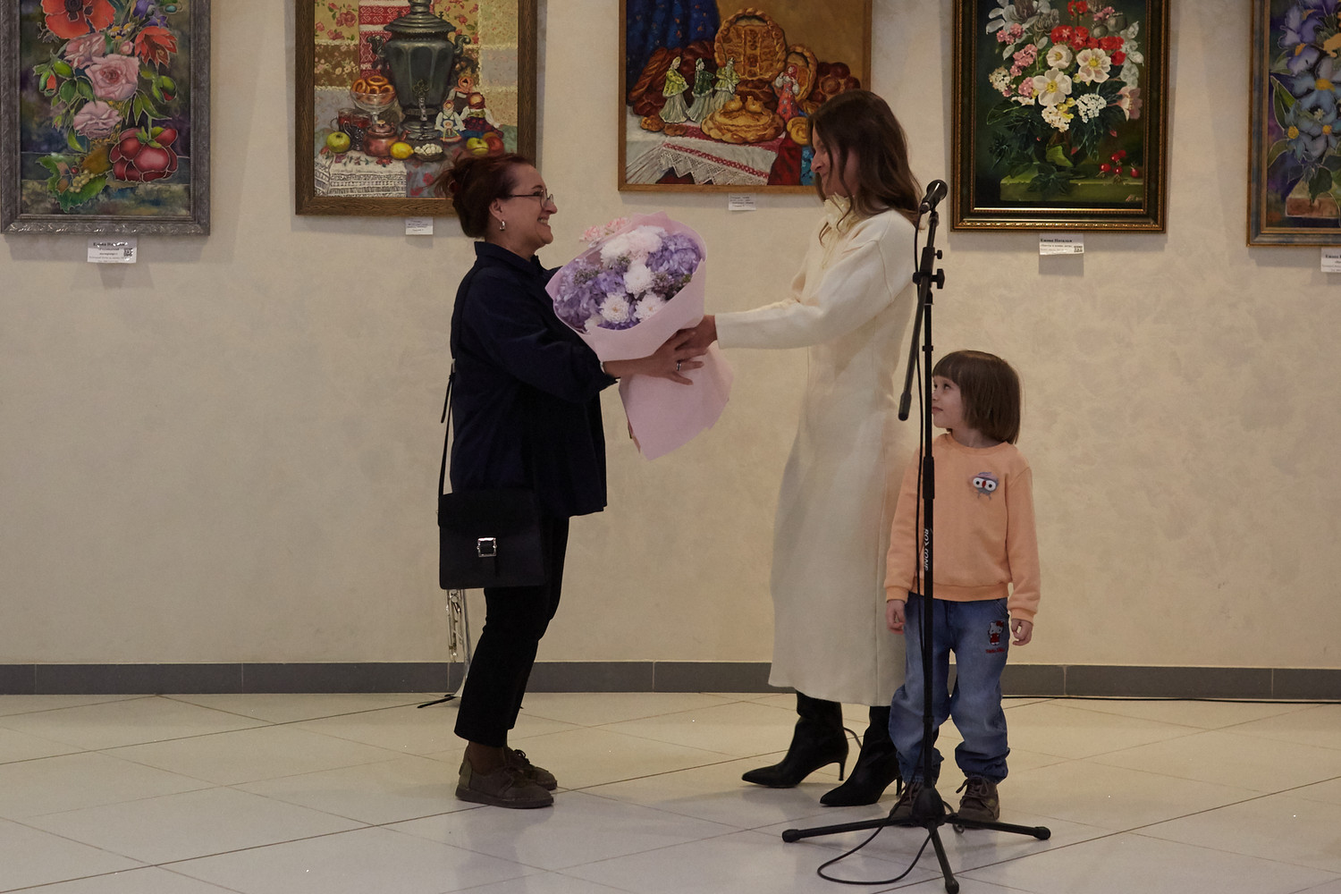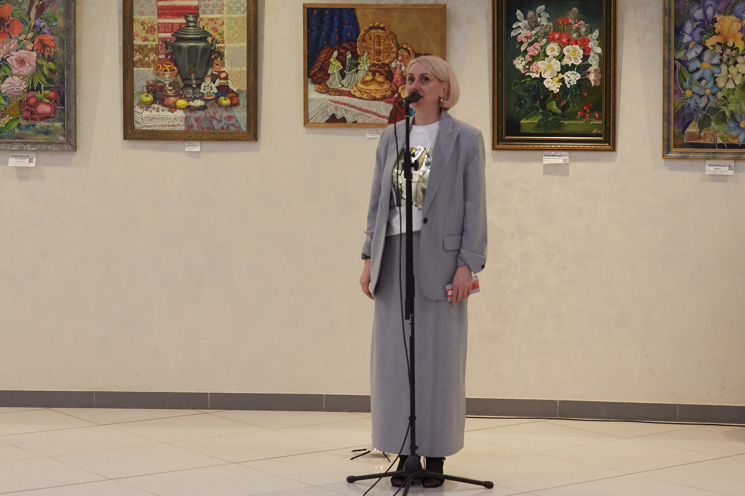 Гостей выставки поприветствовали педагоги авторов представленных картин – члены Союза художников России Татьяна Пентюх, Татьяна Чагорова и Мария Королькова.