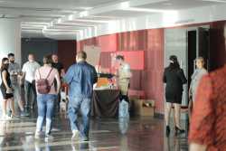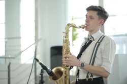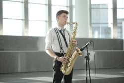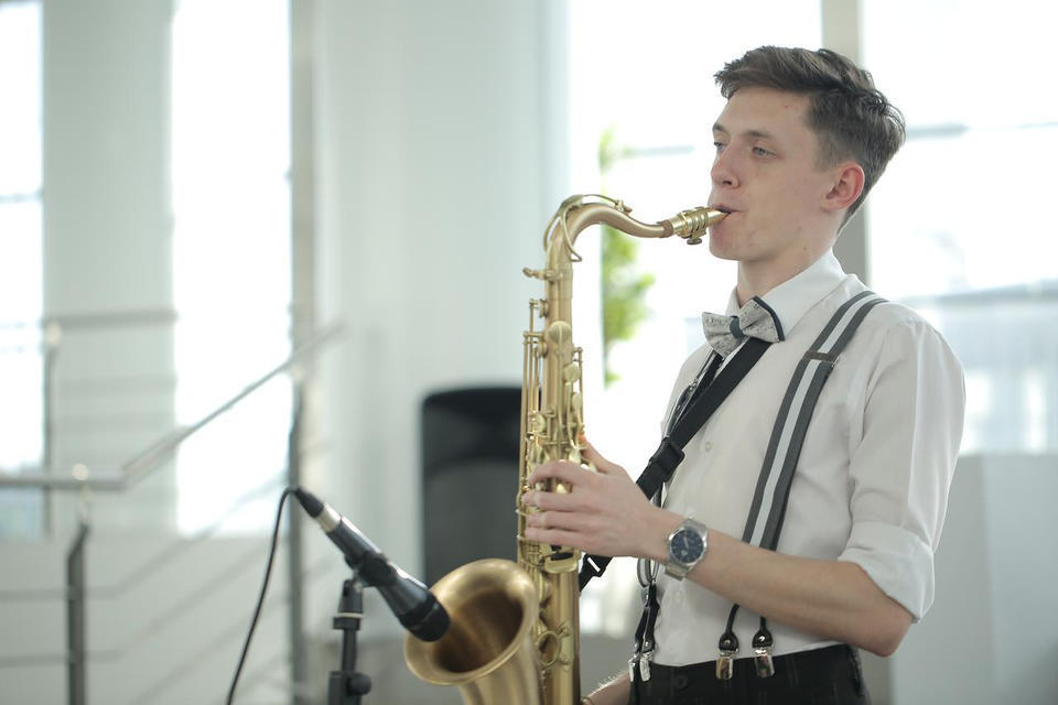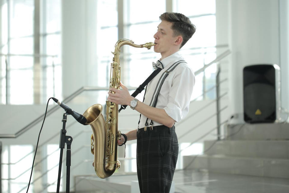 Перед турниром зрителей с программой «Добро пожаловать!» встречал музыкант эстрадно-джазового ансамбля «Экспресс-бэнд» Семён Бойков.
