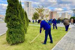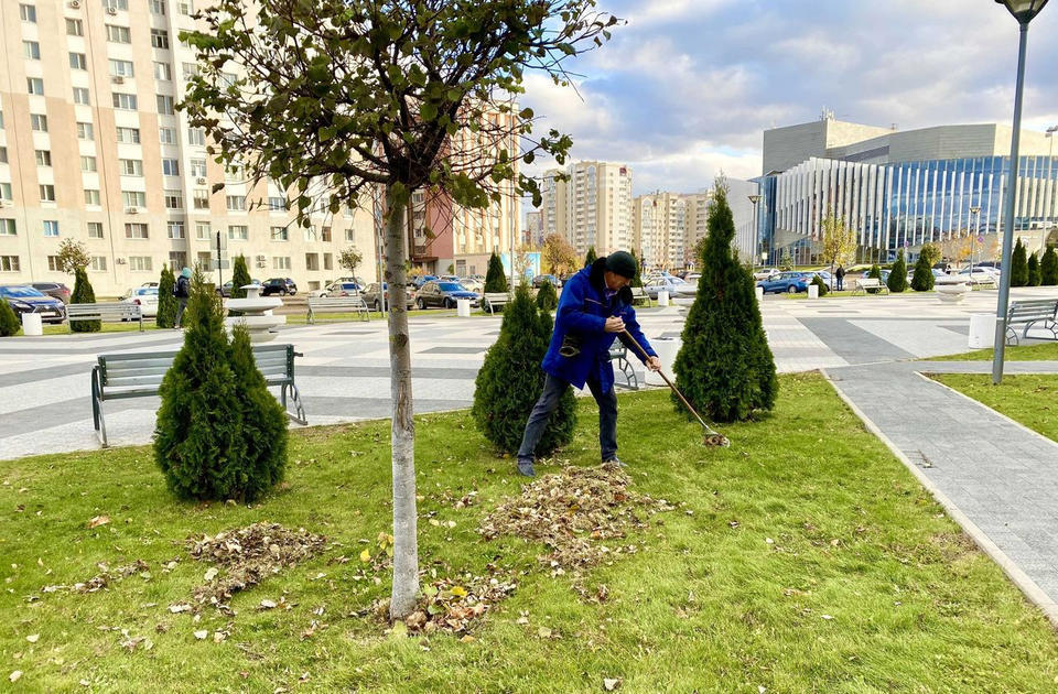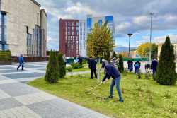 С помощью подручного инвентаря сотрудники очистили газоны от сухой листвы и сорняков, площадь – от мелкого мусора, вырубили сухостой и дикорастущие кустарники, очистили и привели в порядок уличные цветочные вазоны.