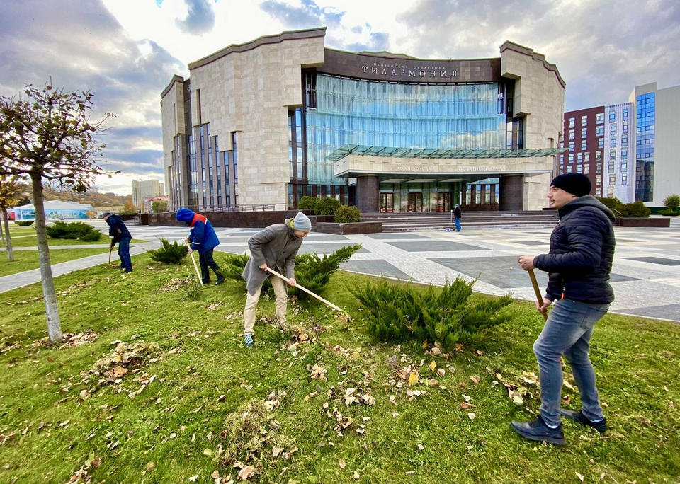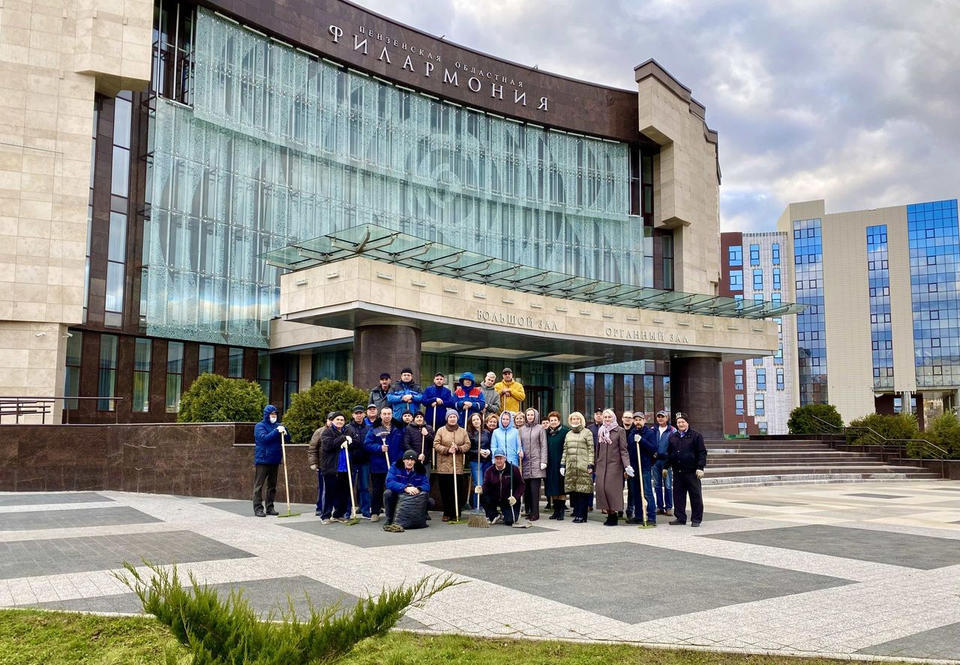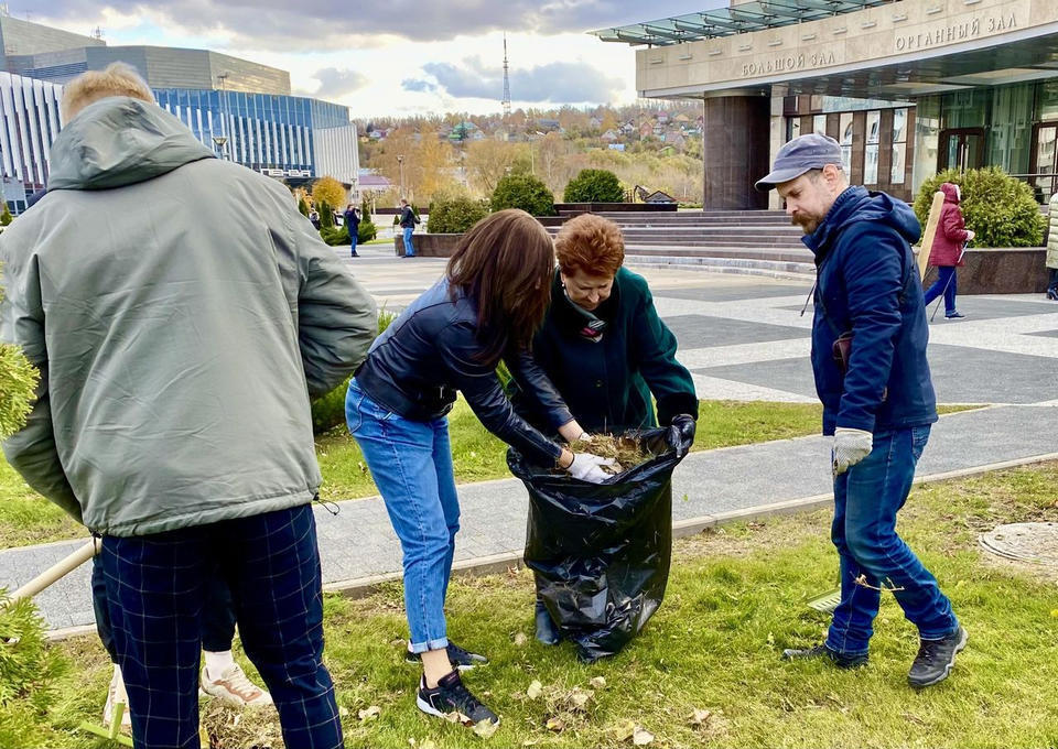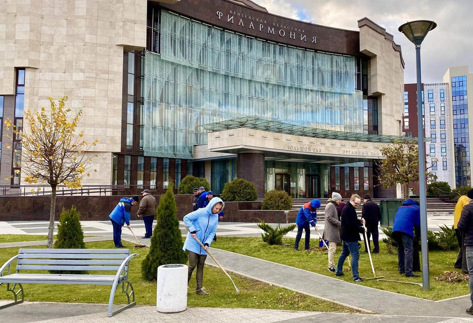 Сотрудники «Пензаконцерта» вышли на субботник 15 октября. Коллектив учреждения культуры провёл уборку прилегающих к филармонии и Киноконцертному залу «Пенза» территорий.