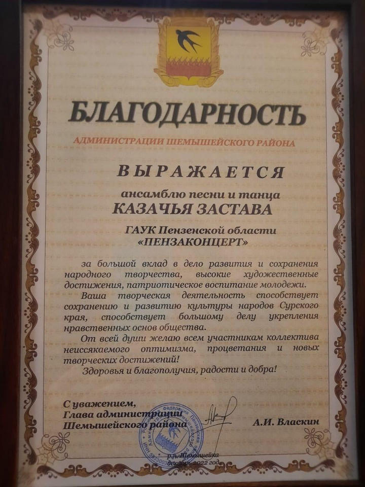 Ансамбль песни и танца «Казачья застава» успешно продолжает выездные концерты по районам Пензенской области!