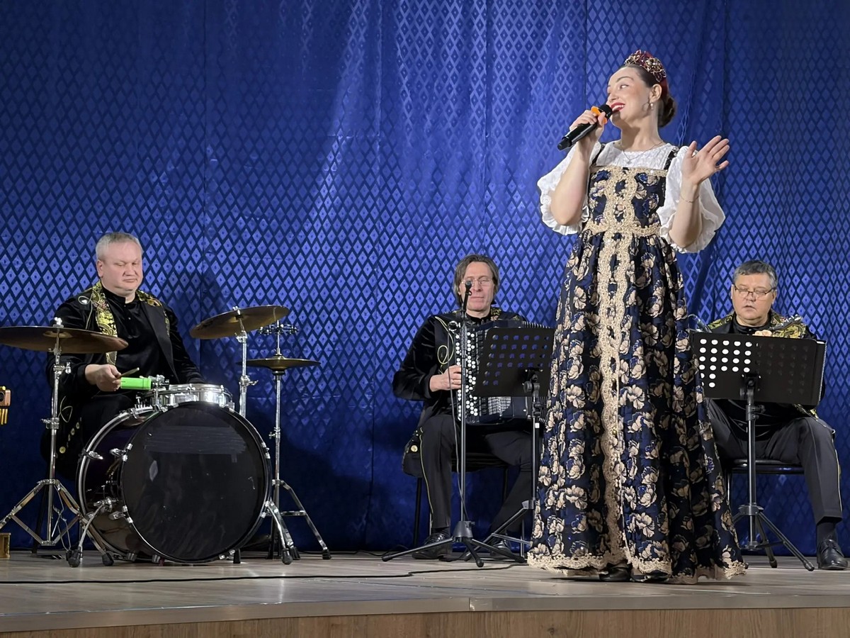 Марта Серебрякова и ансамбль «Губерния» исполнили яркие концертные номера из своего богатого репертуара: от душевных народных песен до глубоких патриотических композиций.