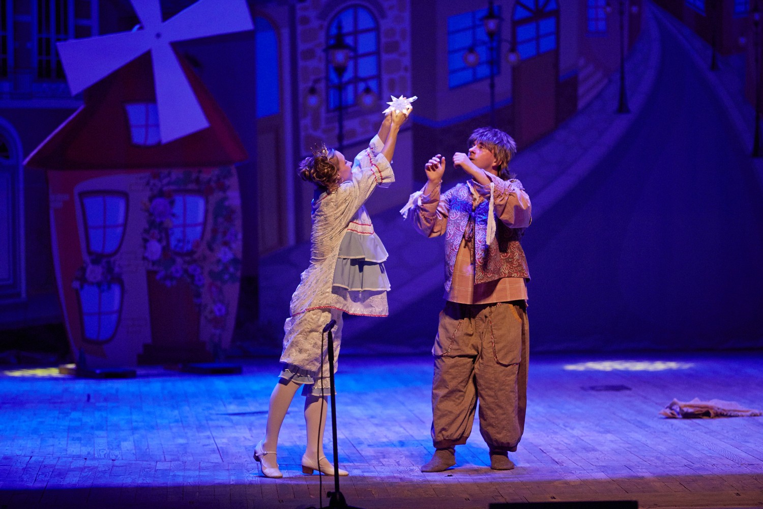 В основе спектакля — всем известная сказка Шарля Перро «Кот в сапогах», повествующая об удивительных приключениях отважного, доброго, озорного кота Барсильона и королевской кошечки Мурр-мяу.